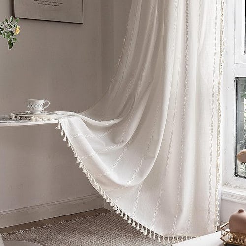 Plastic blinds can lack personality, but these curtains soften rooms instantly. The drapes are made from an embroidered cotton-linen fabric with subtle stripes and handmade tassels. The curtains filter light without sacrificing privacy and hang easily from the rod pocket — adding warmth, texture, and intention to bedrooms or living spaces. They’re available in dozens of colors and sizes.