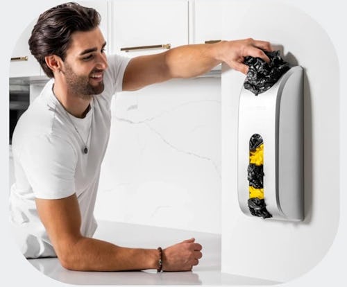 Amazon -Turn that mess of plastic bags that are accumulating in drawers and corners into a handy bag dispenser by mounting this plastic bag holder to the wall. When you empty a grocery bag, shove it into the top. When you need an empty grocery bag, grab one from the bottom. Choose from six colors.