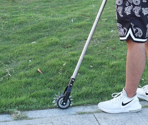 Overgrown edges can make even a tidy yard look messy. This manual rotary edger uses self-sharpening serrated blades to cut clean lines along sidewalks and flower beds. The stainless steel handle adjusts to three heights for comfortable use, and the wheeled design lets the blade do the work without electricity or gas.