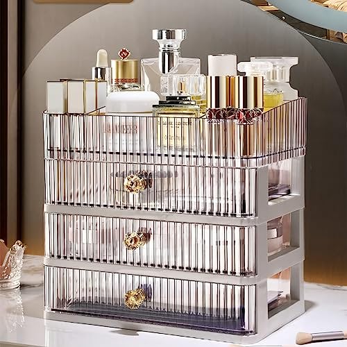 Simbuy Clear Makeup Organizer with 3 Drawers, Bathroom Organizer and Storage, Ideal for Desk and Dresser Vanity Countertop, Great for Cosmetics, Skincare, Perfume,Toiletry