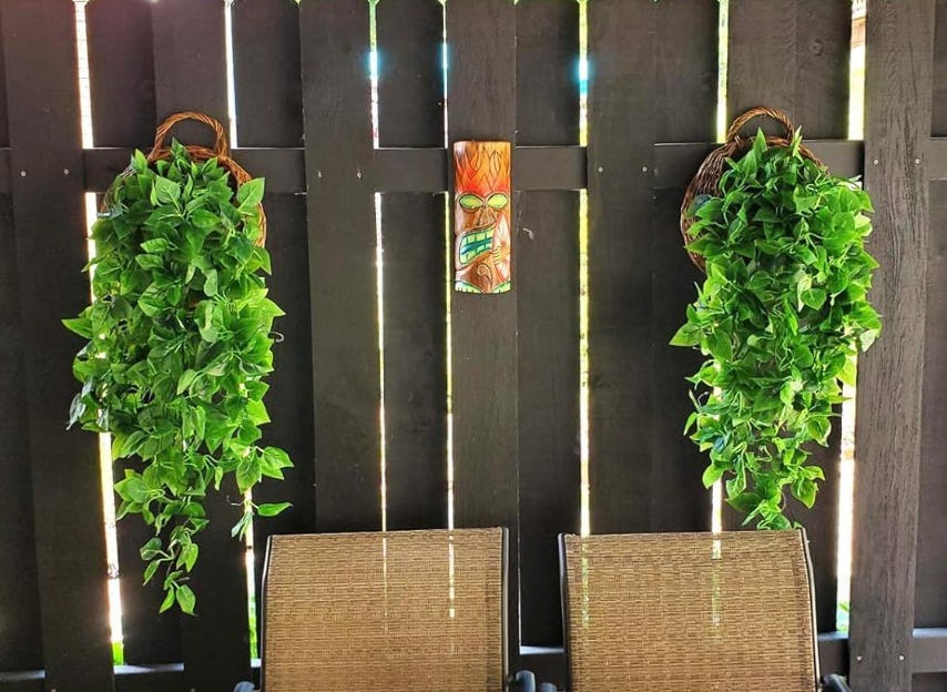 Create the illusion of a garden with these artificial hanging plants that look like the real deal. You can use them indoors or outdoors. Either way, they will survive whatever neglect you subject them to, carrying on through all kinds of weather looking like life and watered. “I use it in a hanging flower pot with live flowers at my front door,” wrote one reviewer. “It provides a little privacy.”