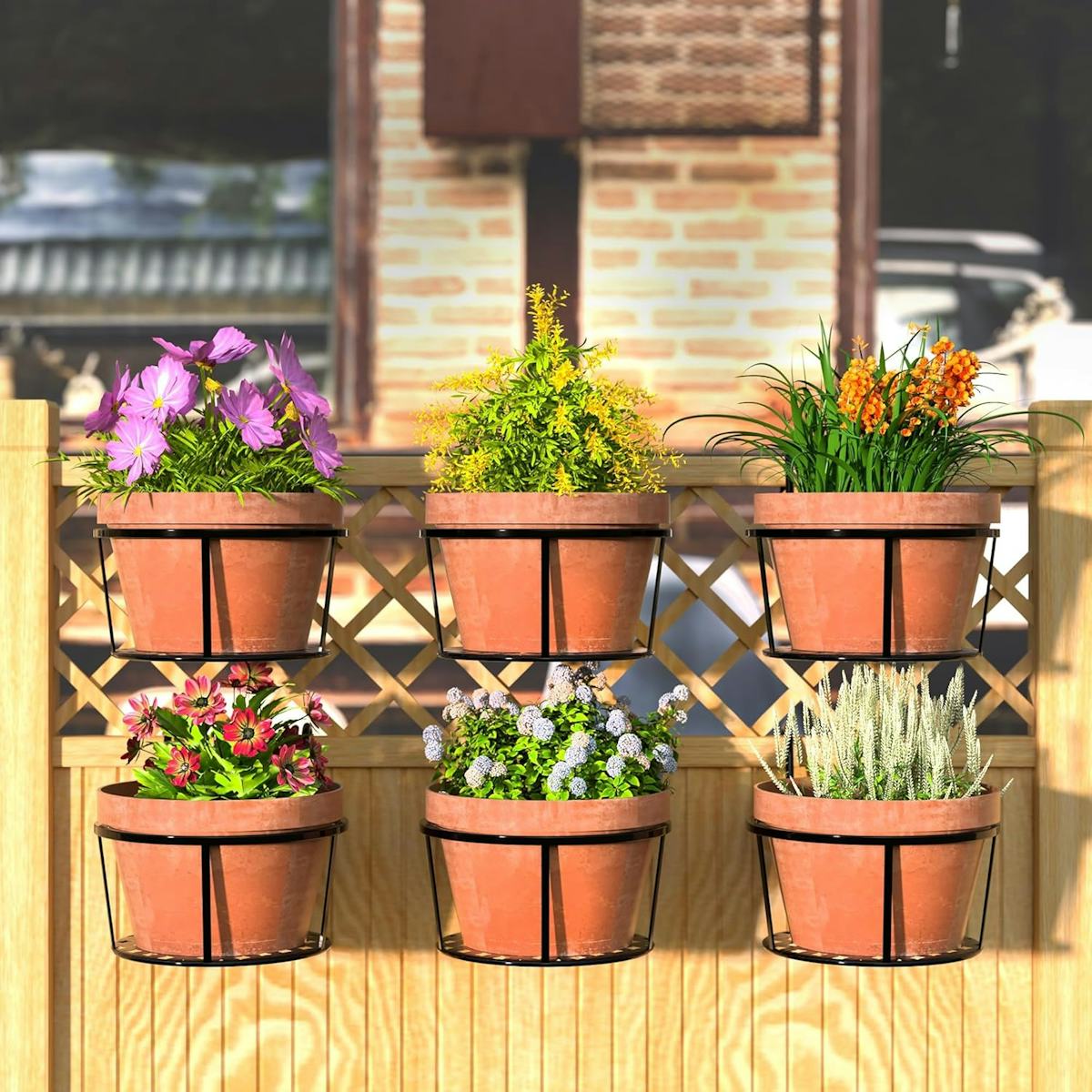 Turn a boring fence into a riot of flowers by hanging post from it with this hanging plant holder. It’s easy. Hook the clever iron frame over the fence and drop a blooming beauty into it. This is a set of six, so you can display your flower pots all over your property or create a line of trailing herbs along a fence.