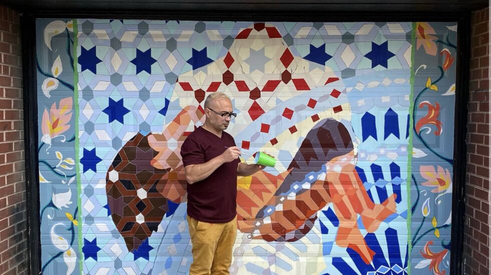 Like he does with the Uptown mural’s geometric shapes, which he painted so it looks like there are zellige mosaic tiles, though there are no miniature tiles in the piece.