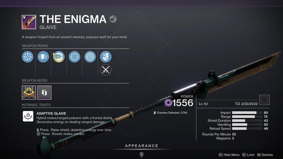 Once Suppressing Glaive doesn’t exist at all next season, I think glaives are going to need some serious buffs to remain relevant and useful. I would suggest dramatically increasing projectile speed (Impulse Amplifier is how it should feel at baseline), and making more use of the melee attack to activate and utilize perks (Swashbuckler, etc). Because once all these glaive mods go away, the new weapon type is going to have some problems. We’ll see what Bungie does as next season gets closer.