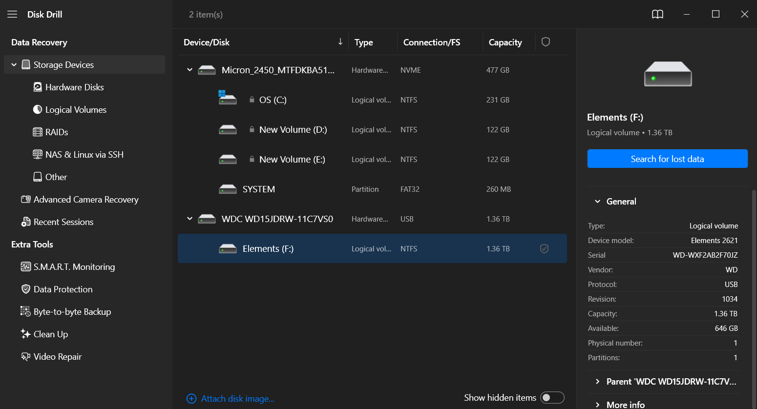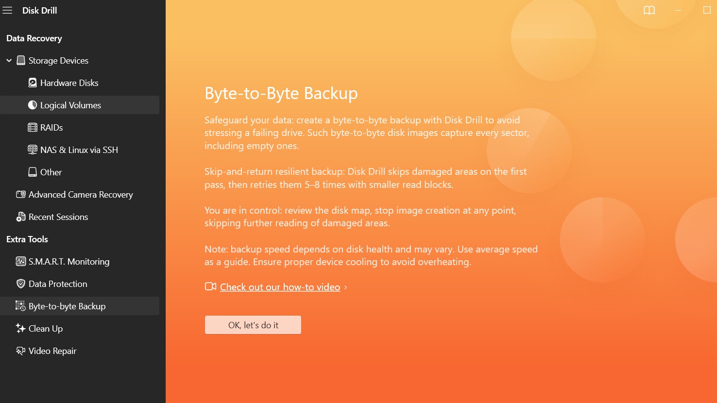 Besides simple data recovery, Disk Drill also offers a byte-by-byte backup option, which allows you to clone each sector of your device one by one while dealing with failing hard drives. You also get several ancillary tools, such as SMART monitoring, which checks your device health, and a built-in disk cleanup tool that looks for useless files on your drives.