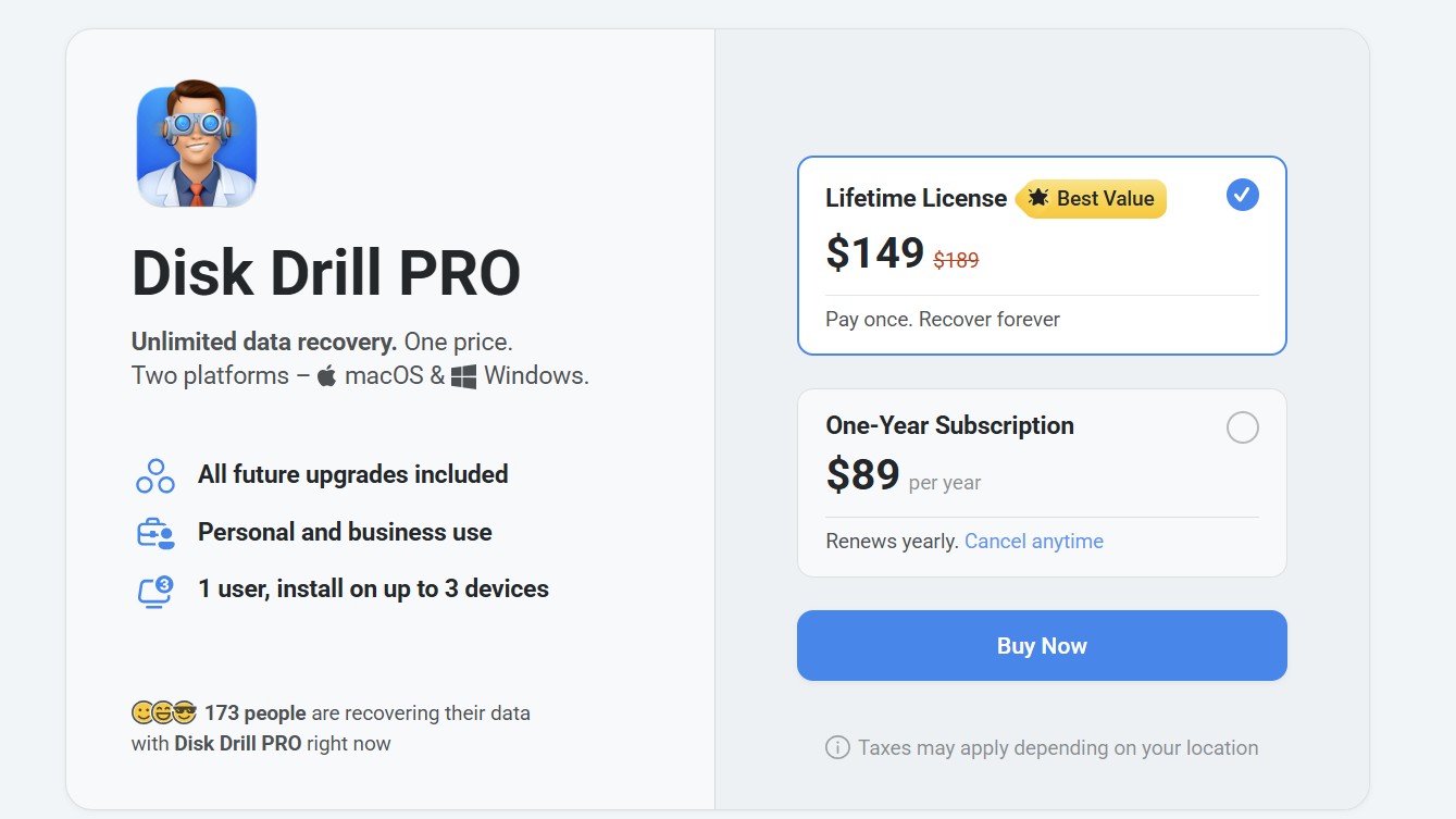 However, you get the best value with Disk Drill if you get its lifetime license, which costs only $149. The prices also remain the same for both platforms: Windows and Mac.