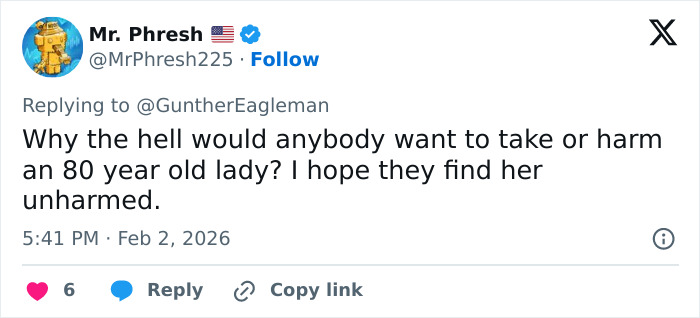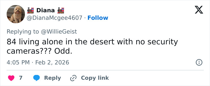 Nancy Guthrie, 80, vanished without a trace, last seen in her Oklahoma home. pic.twitter.com/VWMCBMFmTu