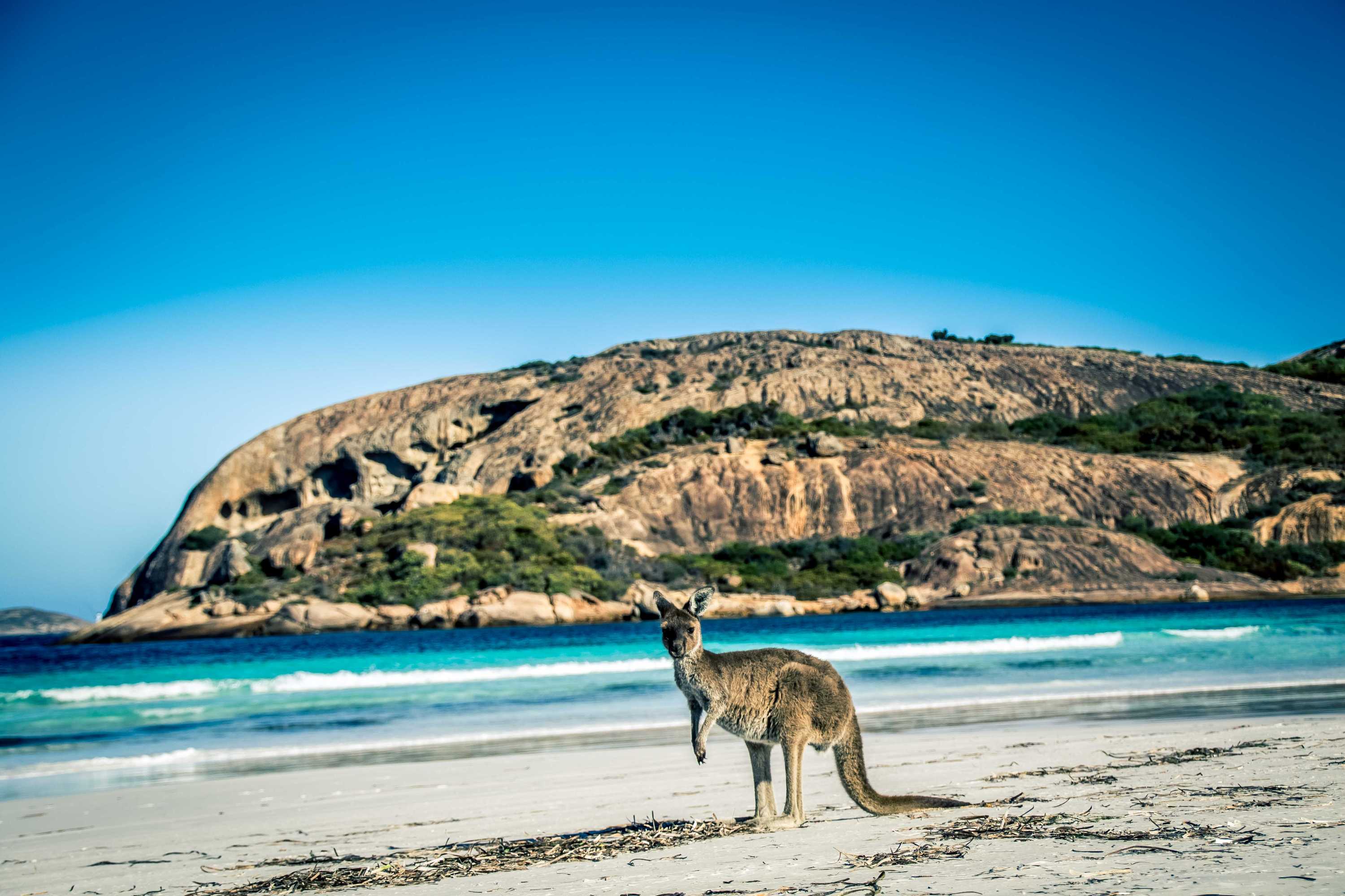 The famed location, east of Esperance on Western Australia's south coast, is known for its powder white sand, beach-hopping kangaroos and turquoise-blue water.