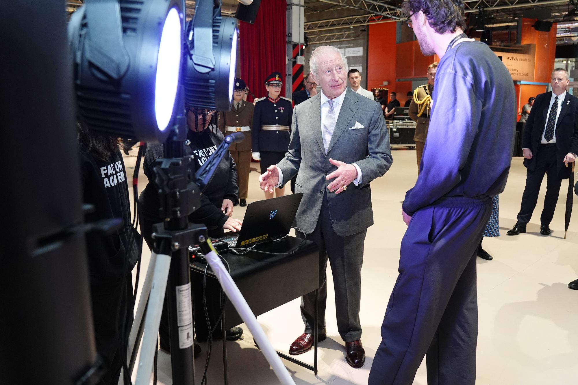 Charles also met young people who had learned skills in stage construction such as lighting, sound and production through the Factory Academy based at Aviva Studios.