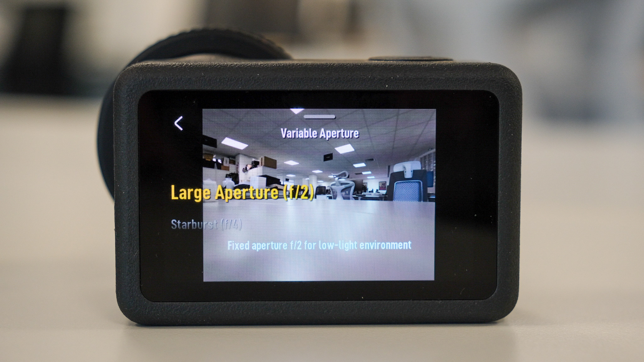 The Osmo Action 6’s most notable upgrade is its variable aperture system, the first of its kind on an action camera, which lets you dynamically switch between f/2.0 and f/4.0. This enables stronger low-light performance and the option for creative shallow depth-of-field effects when using the Macro Lens accessory (although the minimal focusing distance is 20cm, so don’t expect miracles).