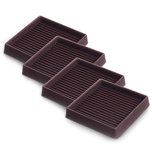 CasterMaster 3X3 Square Rubber Furniture Caster Cups with Anti-Sliding Floor Grip (Set of 4) Brown