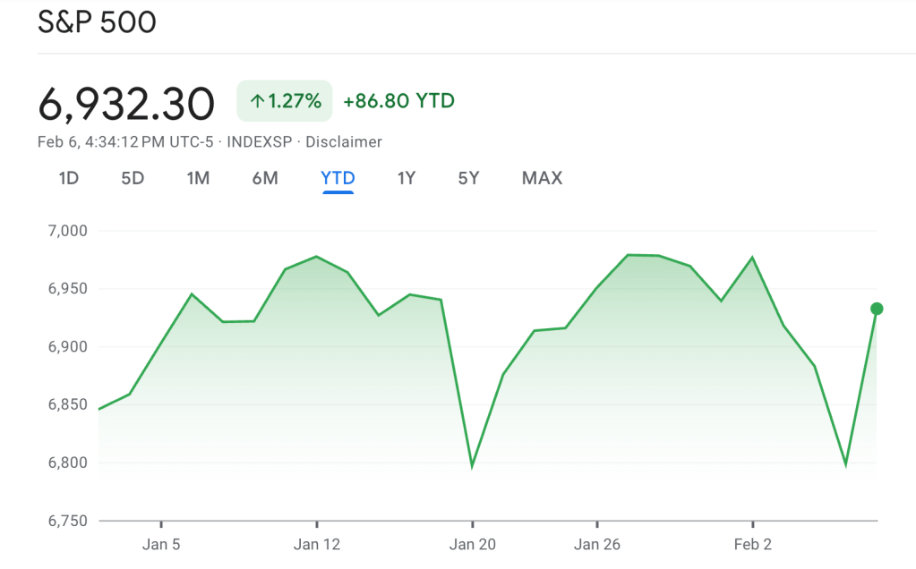 S&P 500 futures were flat this morning after the index closed up strongly on Friday by 1.97%. Markets in Asia and Europe were strongly up this morning. The STOXX Europe 600 was up 0.27% in early trading; Japan’s Nikkei 225 was up 3.89%; and South Korea’s KOSPI was up 4.1%. Even gold is now back above $5,000.