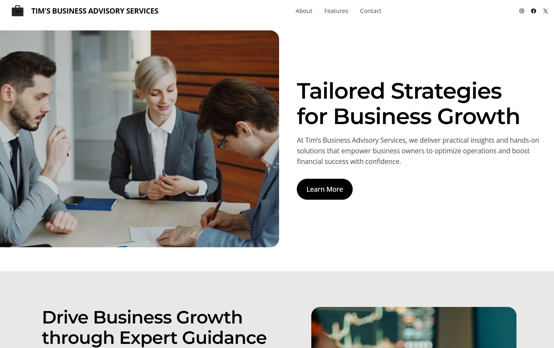 The downside was that it looked exactly like what it was: a corporate template website. However, given that this could be created, content and all, within ten minutes, I felt many would love the outcome.