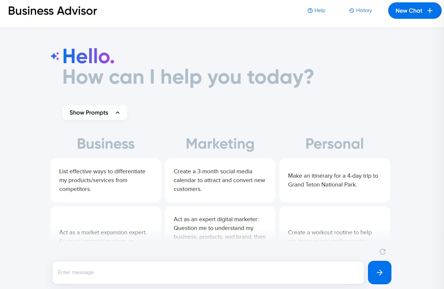 The key difference is that DreamHost has customized the experience to focus on business advisory services, complete with associated prompts.