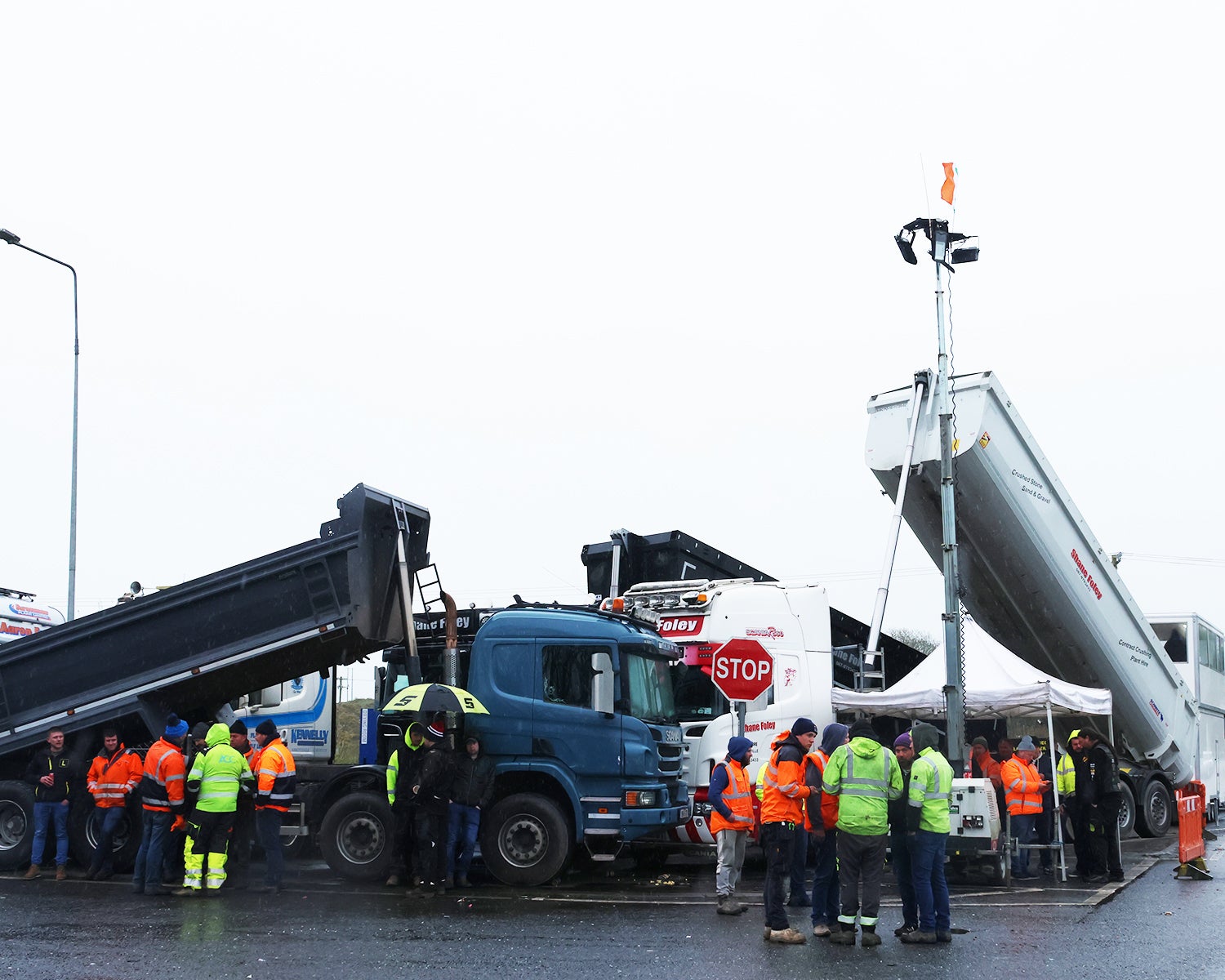 Gardai were later called to a similar action at Galway harbour, where hundreds of protesters gathered in pouring rain while restricting access to a fuel depot by blocking the way with tractors.