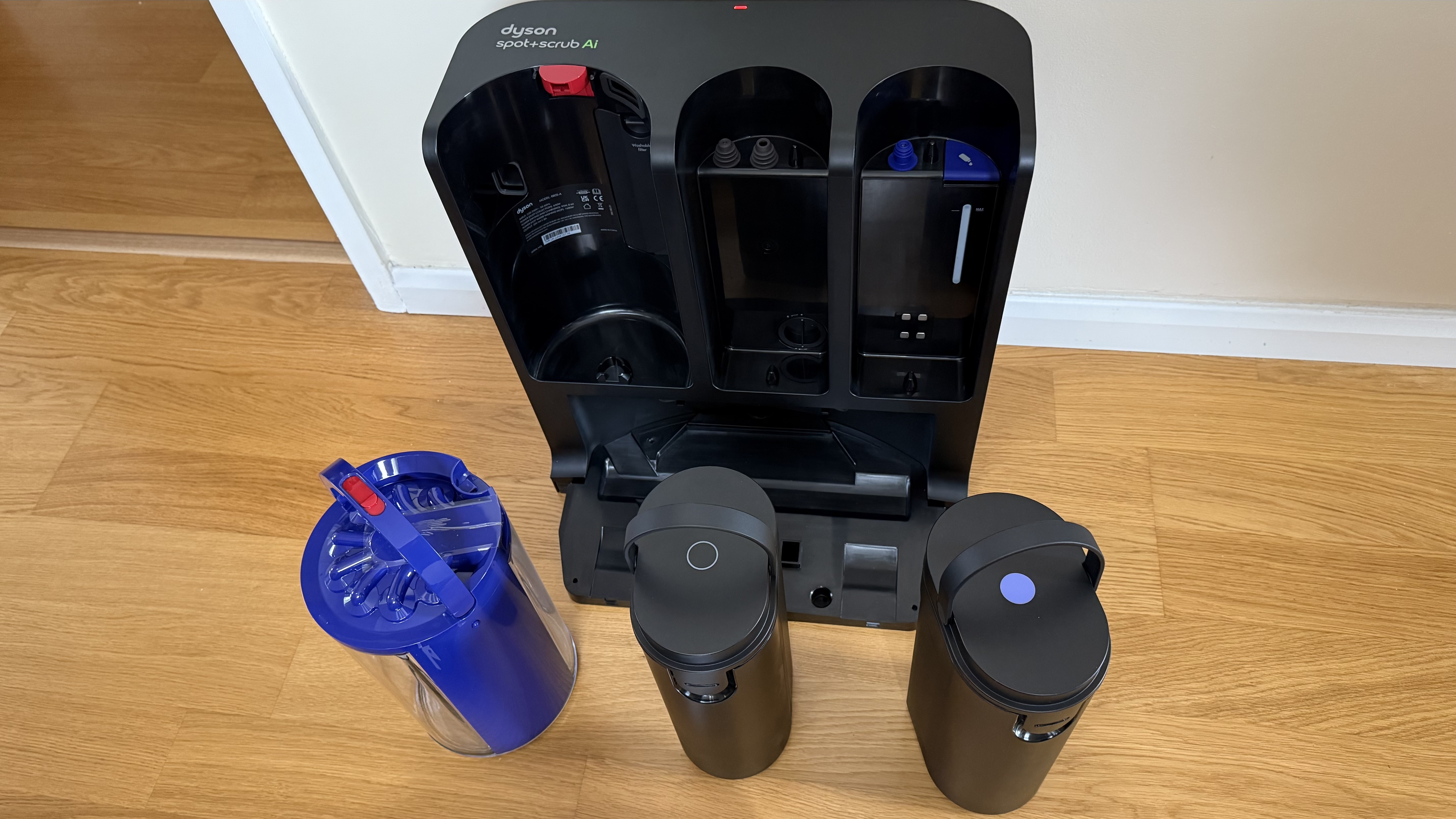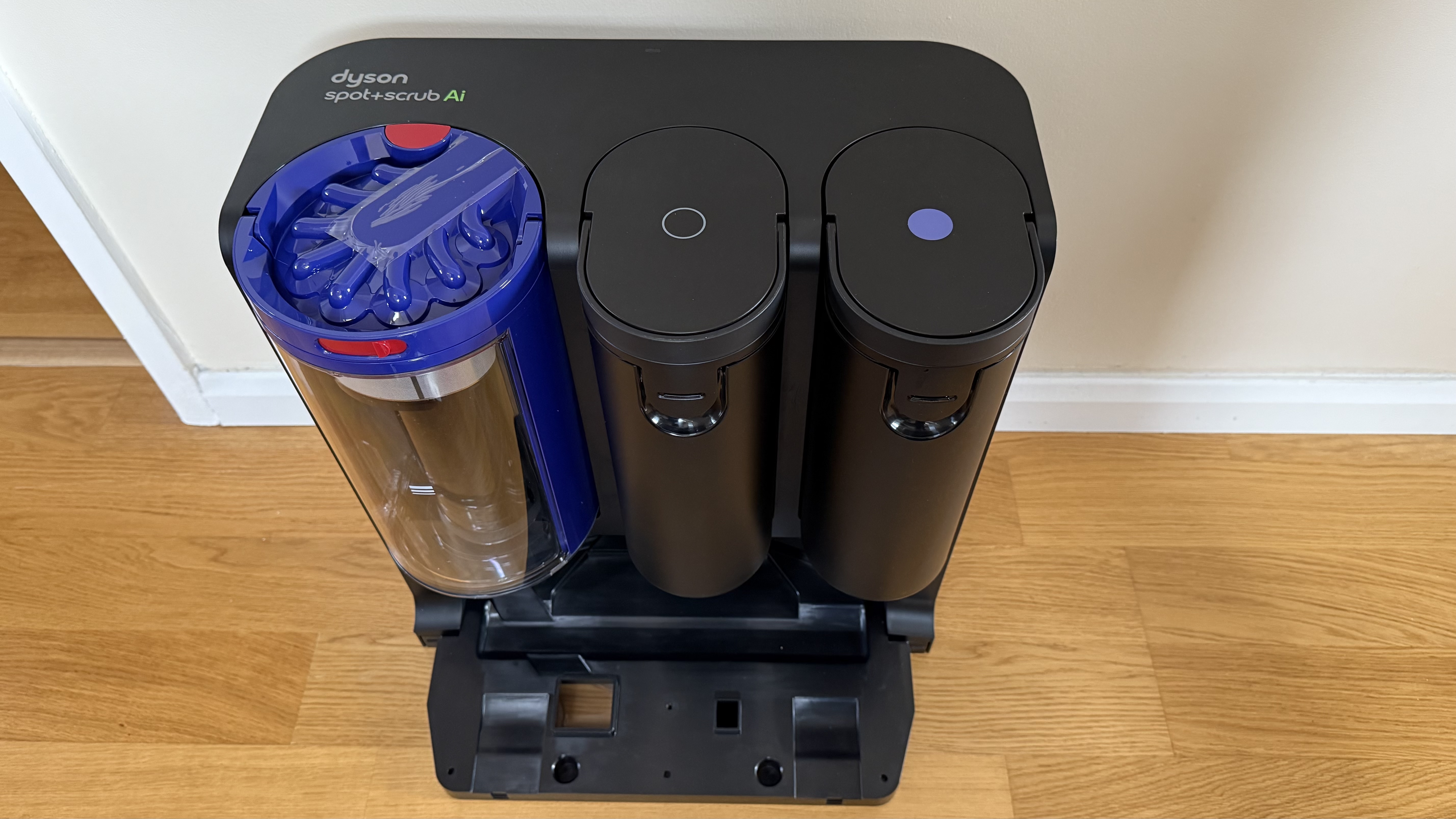 One thing that does irk me is having to buy bags for vacuums, especially if they’re not very big and require more frequent replacement. The Dyson Spot + Scrub Ai wins on that front as it’s a bagless design with a tubular bin that sits in the docking station, with the water containers sitting immediately to its right. The docking station is also home for the robot vac when it’s not being used or when it needs recharging.
