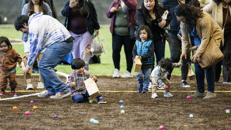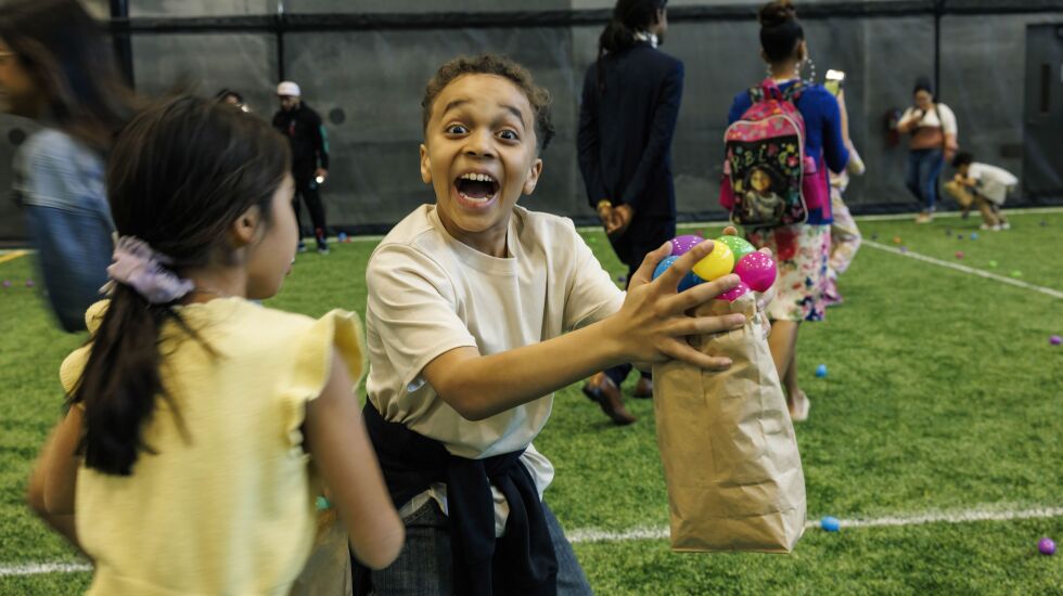 Dressed in their Sunday best, the kids stood at the starting line each holding a brown paper bag — their allotted limit for the Easter egg hunt at the newly-opened North Austin Center sports facility.