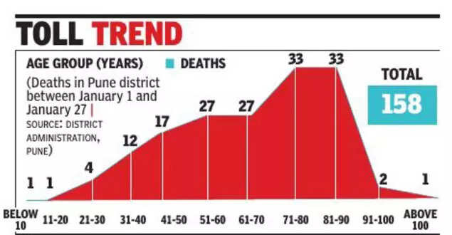 PUNE: Senior citizens with one or more pre-existing ailments accounted for 60% of Pune’s total 158 Covid deaths from January 1-27, the latest report of the district administration has revealed.