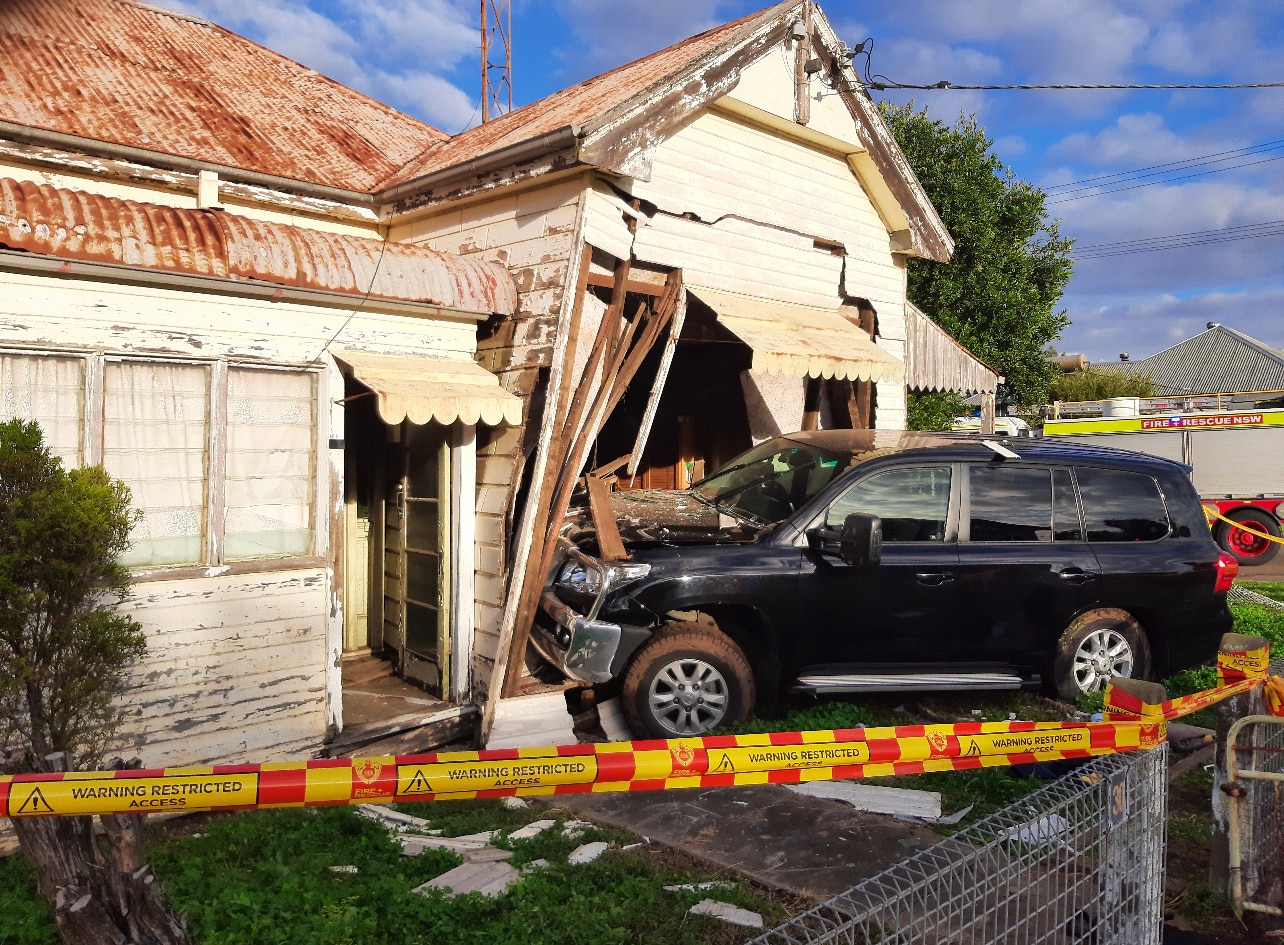 Fire and Rescue NSW said a woman who was also inside the house at the time of the crash escaped injury.