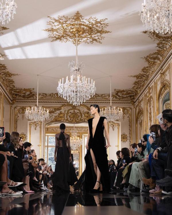 One of the standout trends of the show was the use of luxurious fabrics such as silk, satin, and velvet, which added a touch of opulence to the black dresses. Embellishments such as sequins, beads, and feathers further enhanced the glamour and allure of the designs, making each piece a true statement of style.