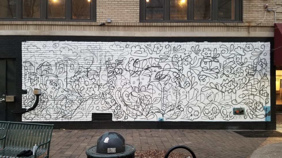 A business owner, Dream Hall’s Kevin Echevarria, let him paint on his building last November on what’s been designated a “permission wall.”
