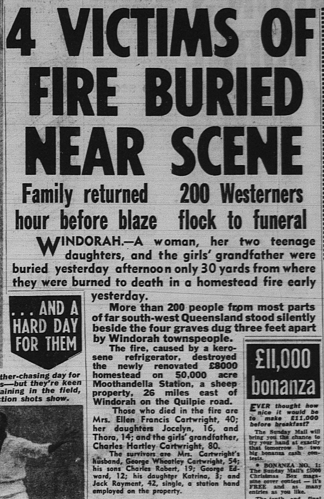 The Courier-Mail also wrote of the family's tragedy and gave details of the funeral which attracted a vast outpouring of community support.