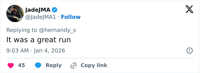 “This really is the end of her bizarre adventure,” one fan wrote on X.