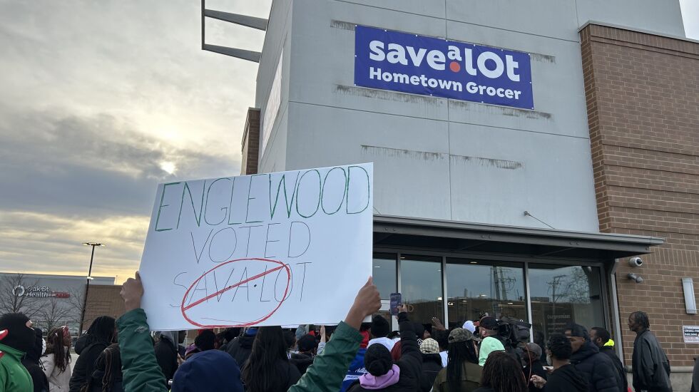 A Save A Lot grocery that was set to open in Englewood on Thursday will remain closed after demonstrators who gathered outside the store demanded to first meet with owners.