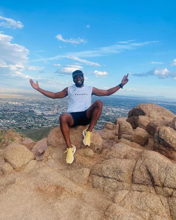 Another snapshot shows Paredes standing amidst the rugged terrain, smiling confidently as he embraces the challenges of the mountain. His adventurous spirit shines through as he navigates the rocky landscape with ease and grace.