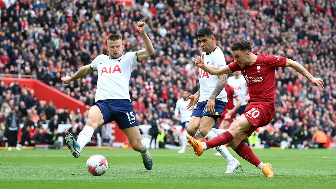 A chaotic first half was only three minutes old when Curtis Jones put the hosts in front and two minutes later Tottenham's defence crumbled again as Luis Diaz volleyed home.