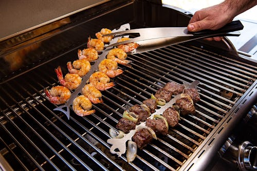 These BBQ skewers seem kind of odd, but you’ll never want to make kebabs without them once you give them a shot. The 12-inch stainless steel skewers (the set comes with four of them) can securely hold chunks of meat like beef, chicken, or pork, plus veggies. They can easily be flipped once one side gets those delicious grill marks. And the special tips prevent the food from falling off in the process.