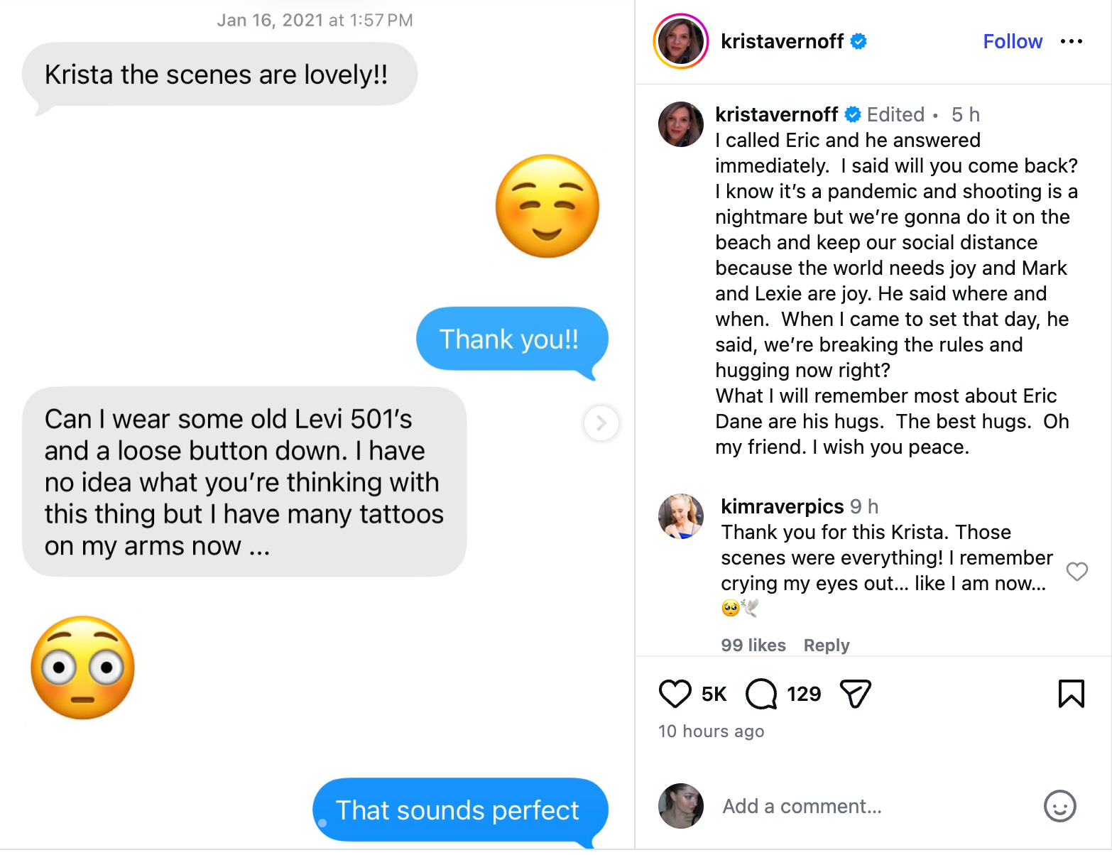 “My heart is broken. We lost a good man [Eric Dane] who i had the pleasure of sharing the screen with. We became pals and laughed often. My prayers go out to his beautiful family. see you on the other side brother.”