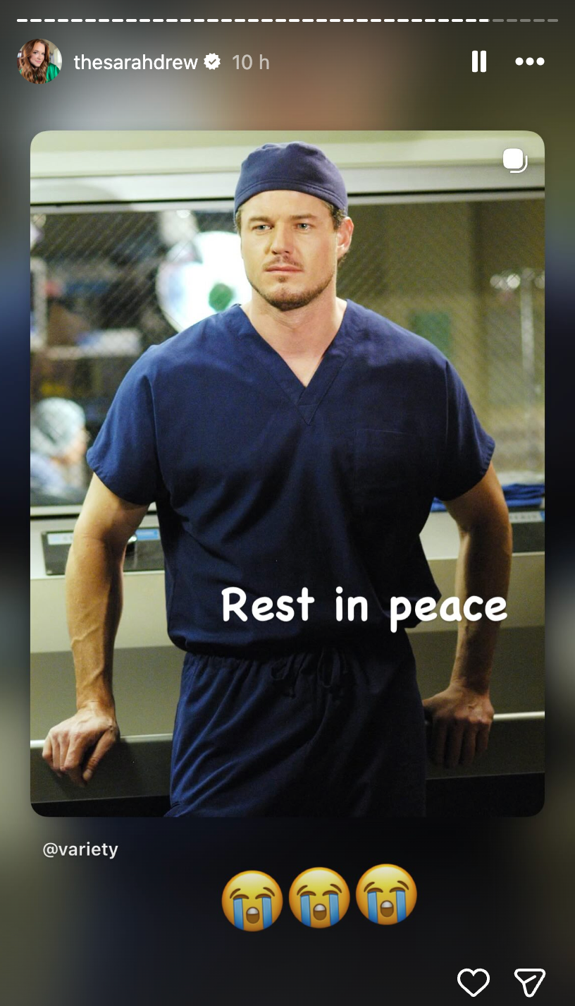 Drew, who portrayed Dr April Kepner on the series, also shared a picture of Dane in character as Dr Mark Sloane in a heartfelt tribute.