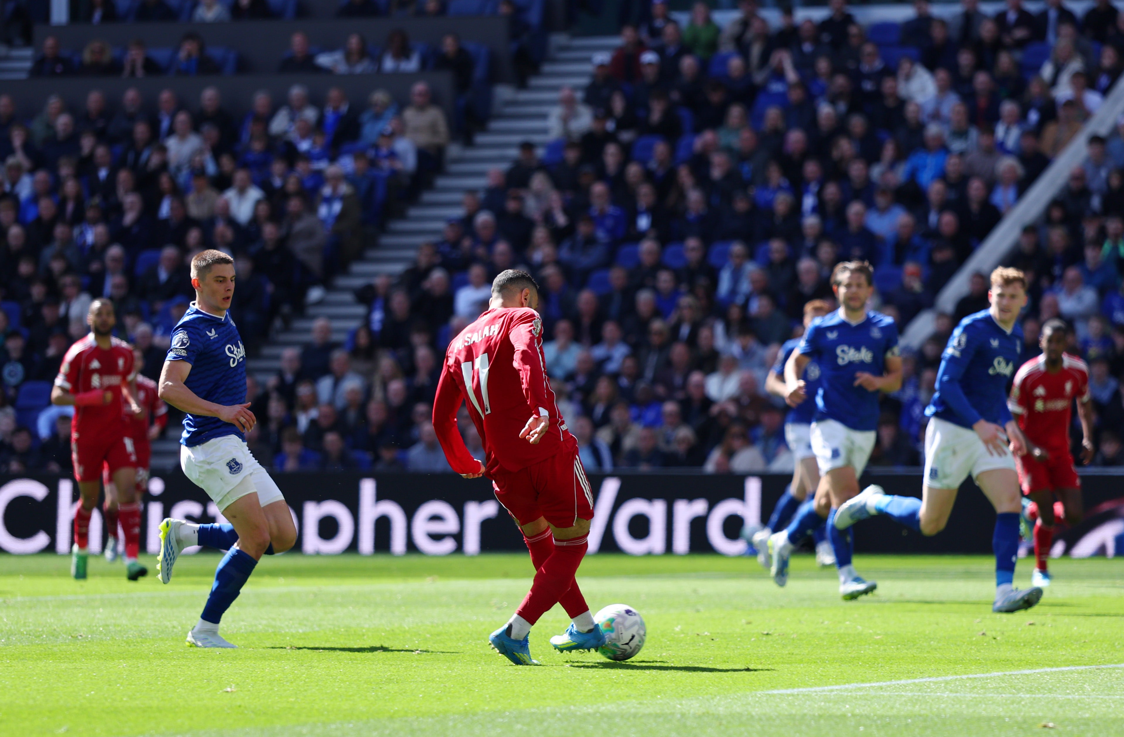 Mohamed Salah had struck Liverpool’s first goal at Everton’s new stadium just two-and-a-half minutes after Iliman Ndiaye thought he had given the hosts a deserved lead, only to see his strike disallowed for an offside in the build-up.