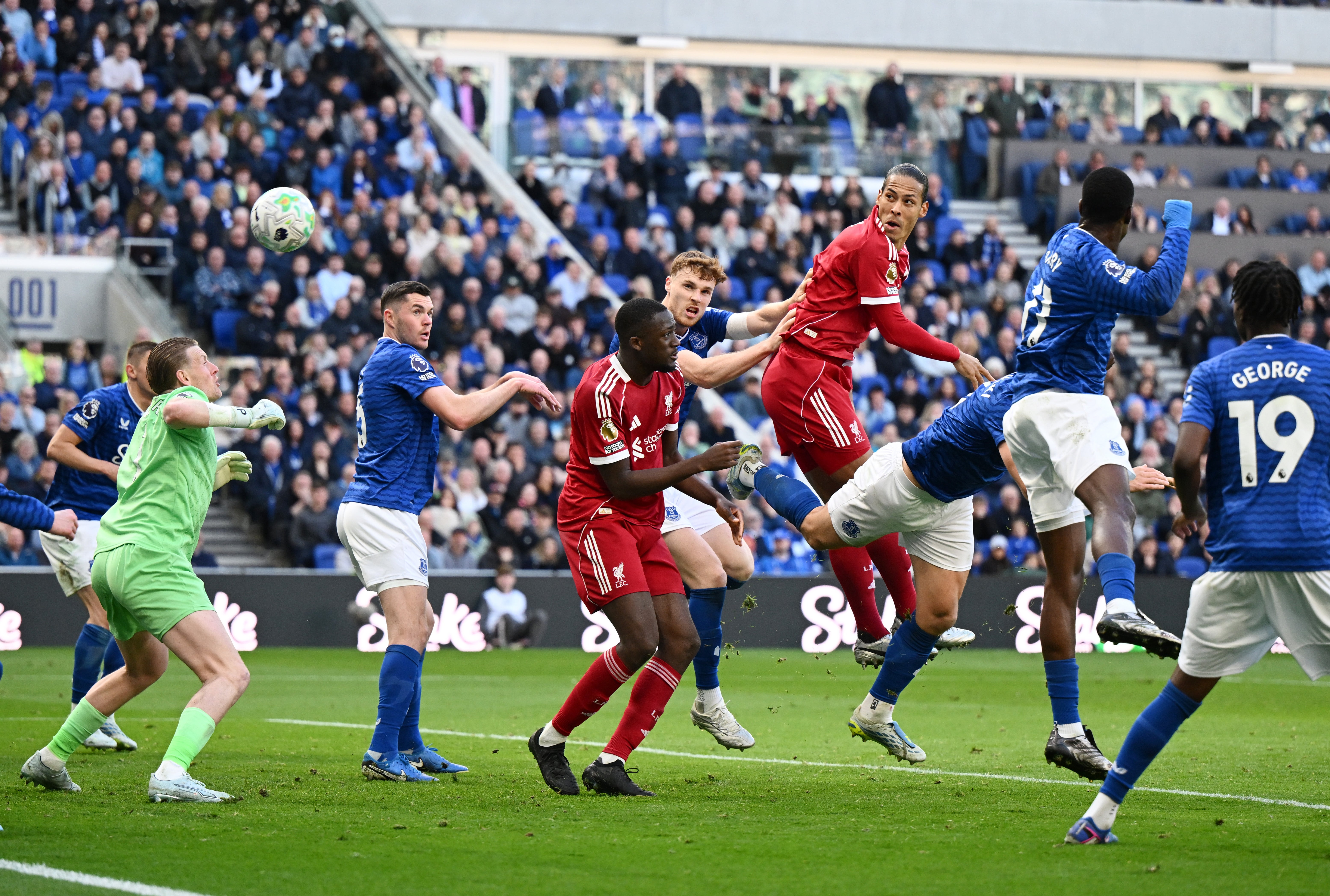 Everton hearts broken at the Hill Dickinson. Szoboszlai puts the corner into the mixer, Van Dijk reads the flight of the ball and heads home from six yards out. Incredible!