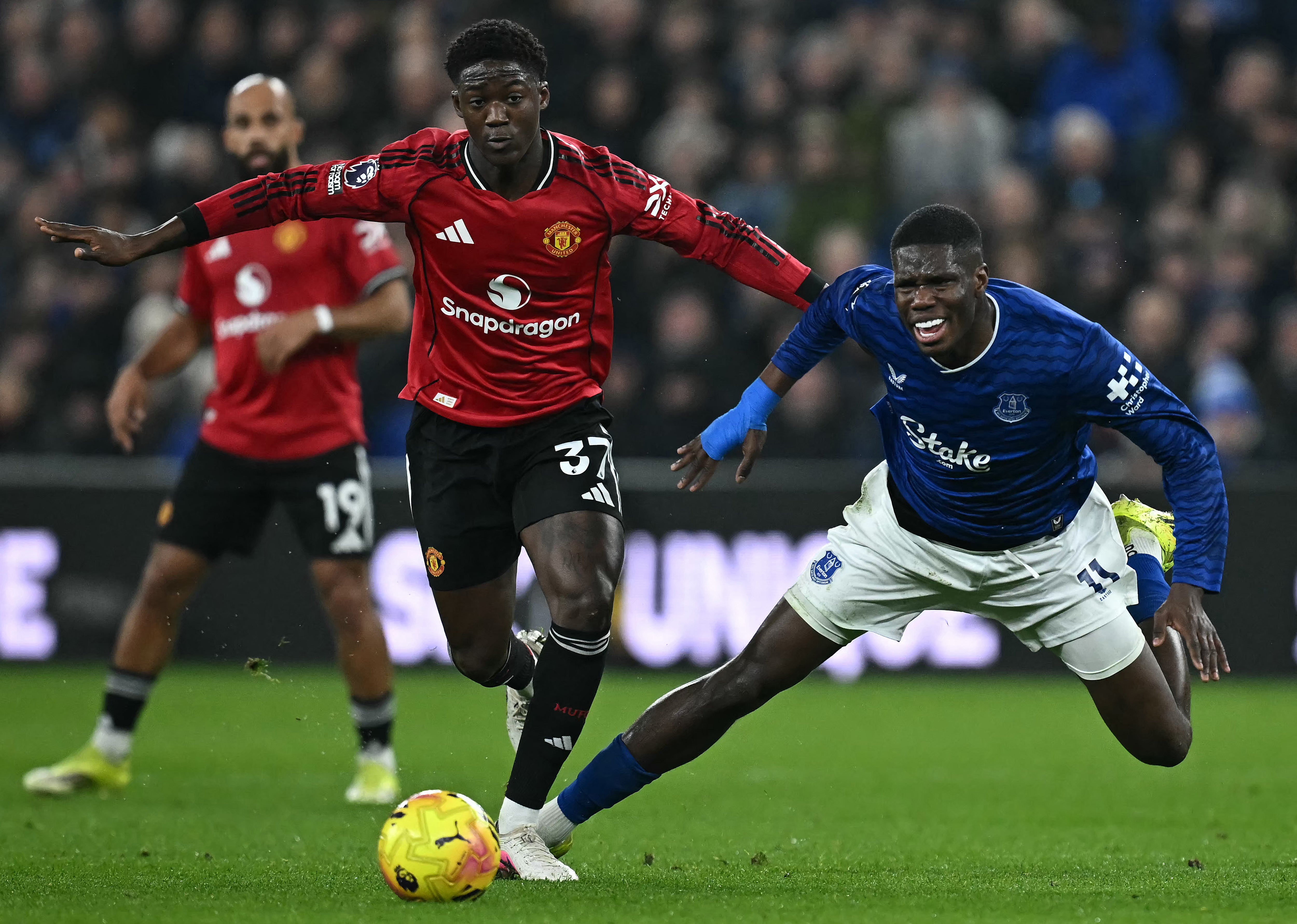 21:37 , Jamie Braidwood78 mins: Pickford is booked for dissent - despite the referee being in the opposite half. United have sent on Mazraoui for Mbeumo.