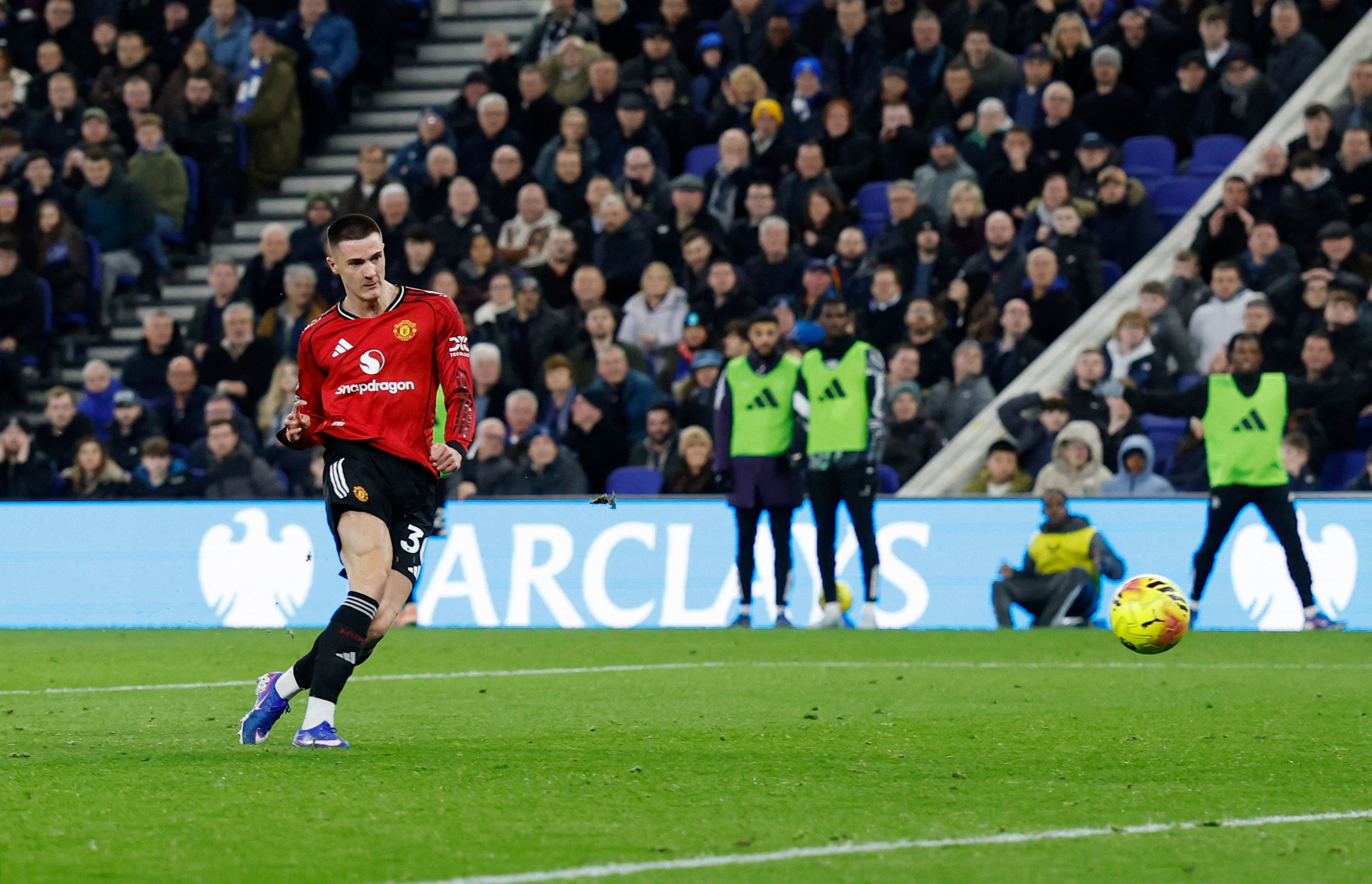 From the free-kick, it’s cleared by Everton but falls to Dalot... he goes for goal on the volley and it whistles just wide! CLOSE!