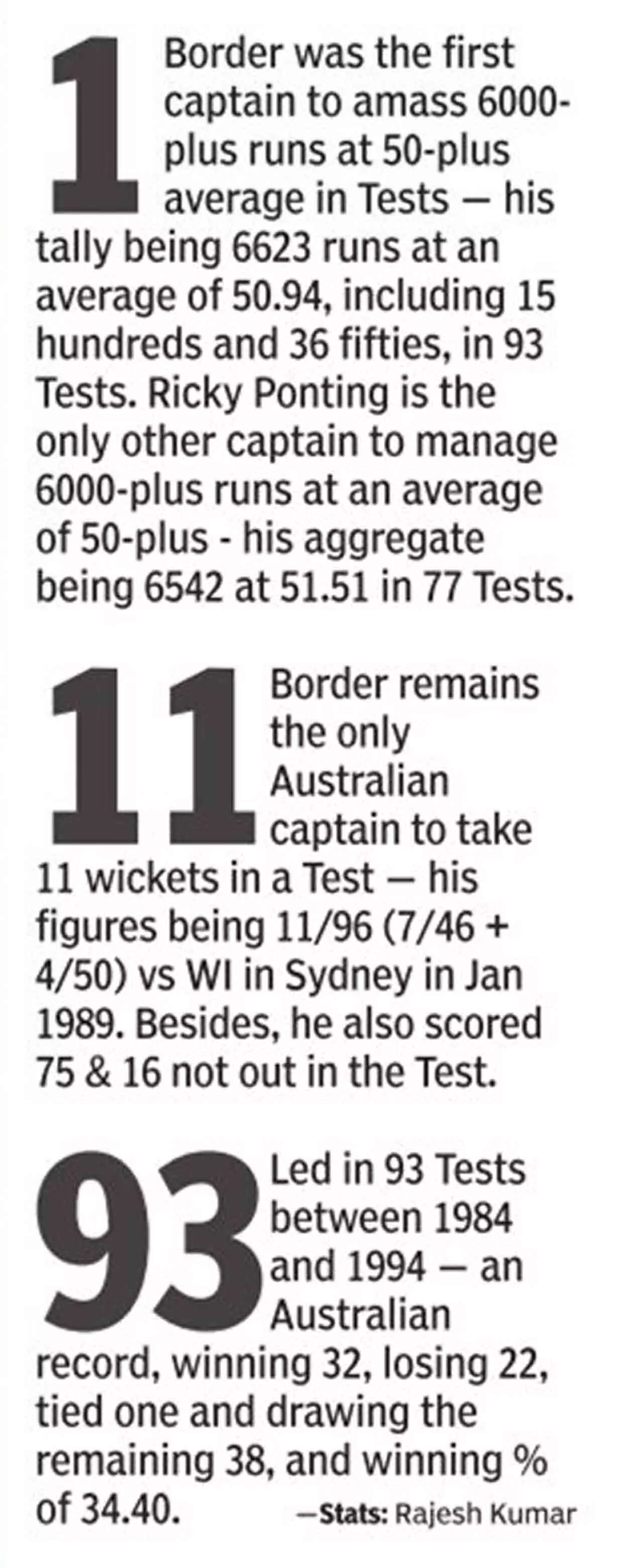 MELBOURNE: We are sitting at the rain soaked Gabba as the third Test drips away to meaninglessness. The legendary Allan Border, one of Australia's most durable captains, one of their most determined and prolific batsmen, is lounging on a sofa, staring at the TV screen. There was a time when it was hard to imagine an Australian team without Border as leader. He stepped up at a difficult time, adapted to the role and by the time he left, Australian cricket had metamorphosed into the relentless winning machine it is today.