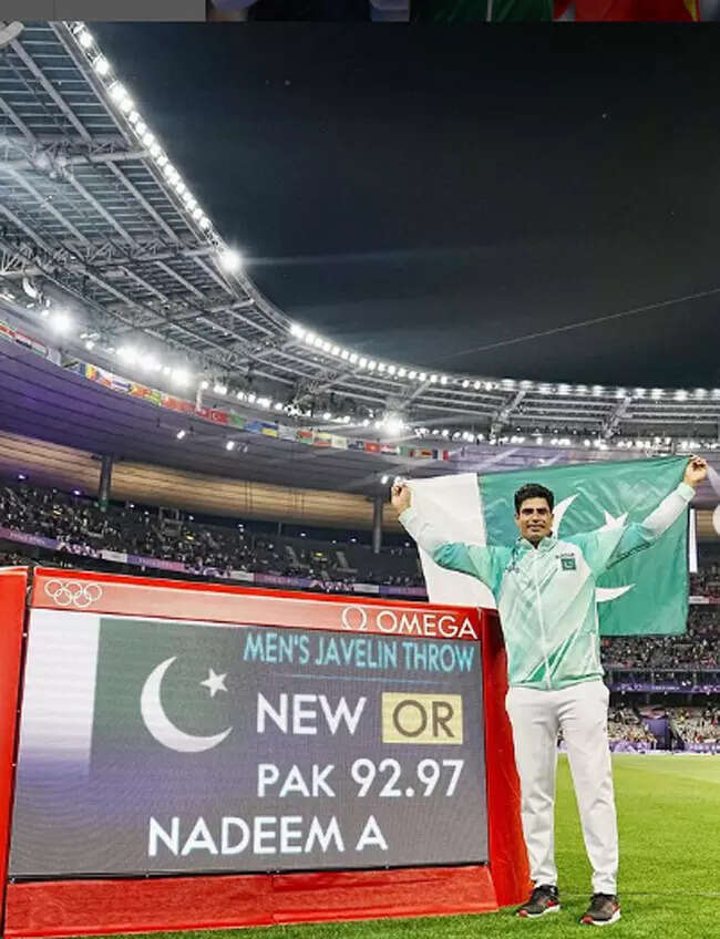 NEW DELHI: Both Neeraj Chopra and Pakistan's Arshad Nadeem had foul throws in their opening attempts during the final. However, when Nadeem returned for his second throw, no one anticipated the record-breaking performance that would secure him the gold medal. Nadeem unleashed a spectacular 92.97 meters on his second attempt, setting a new Olympic record that left the Stade de France in awe.