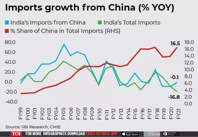 However, India's trade deficit with China has continued to fall in FY21.
