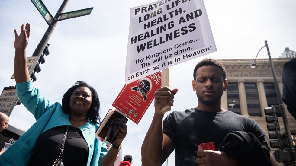 A resounding chant broke out in Millennium Park’s Wrigley Square following New Landmark Missionary Baptist Church Pastor Cy Fields’ prayer: “Chicago belongs to God.”