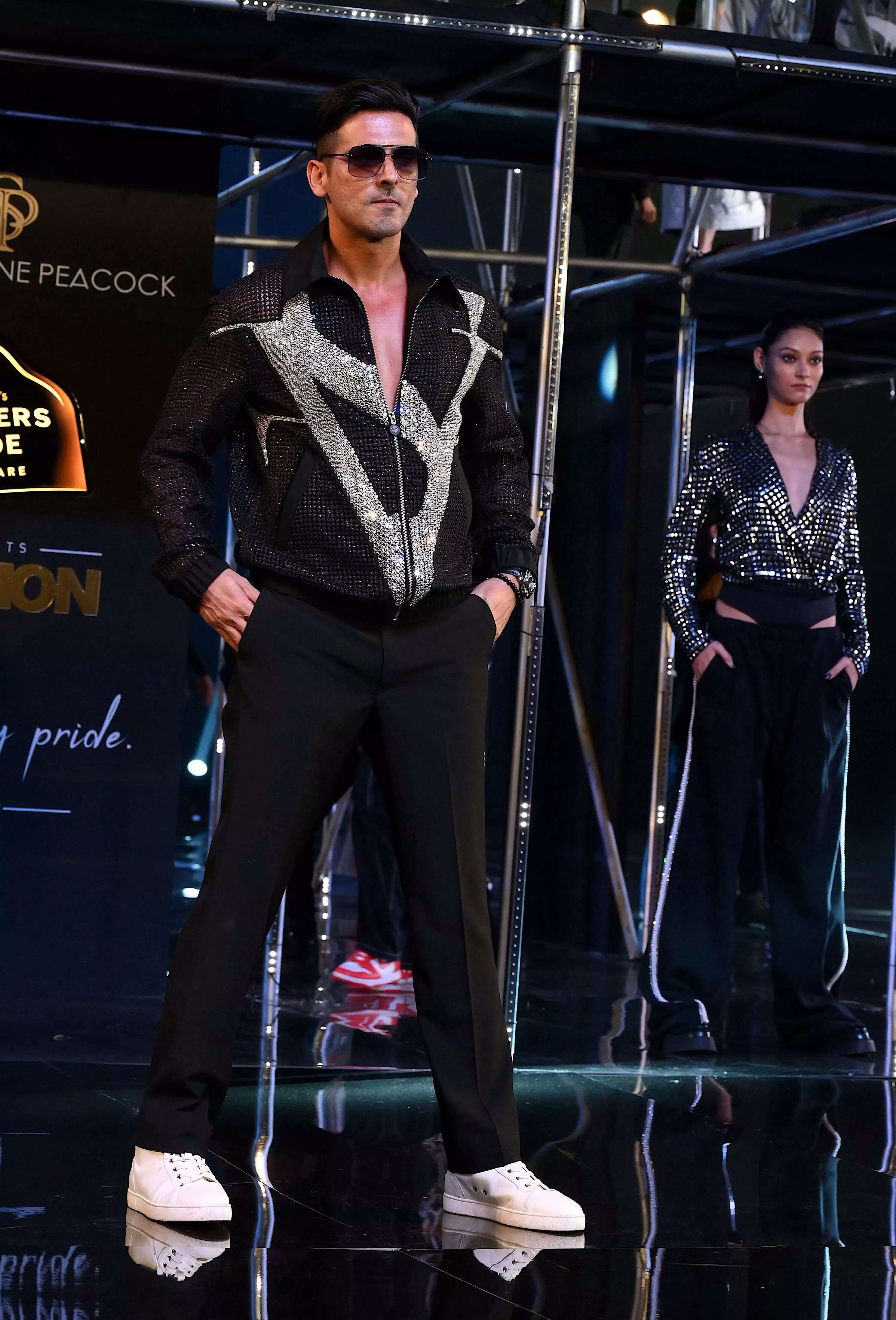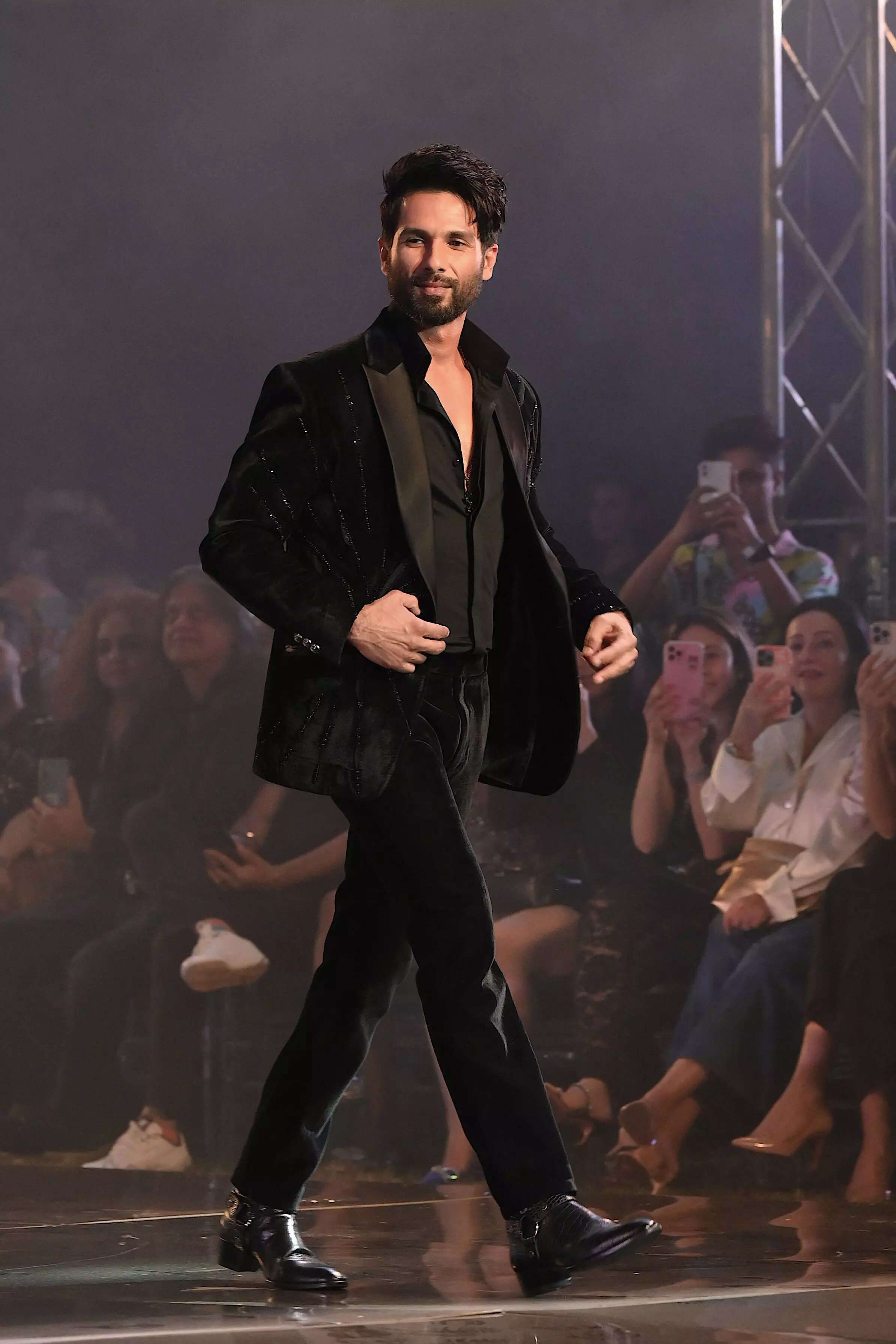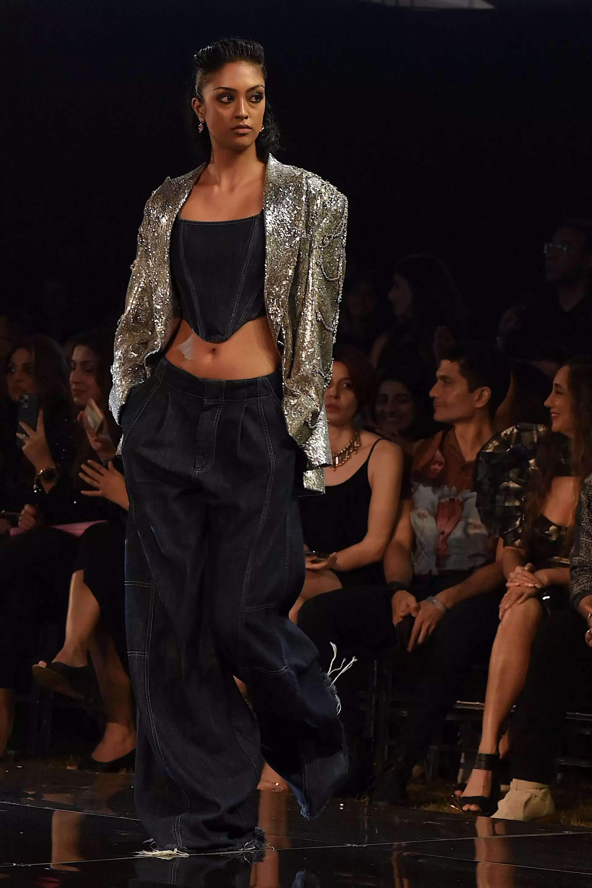 Bright Silver crystalization on black and navy blues with multicoloured artwork emphasising sequences on jackets were adding certain lavishness to the street culture and philosophy. Oversize baggy pants were heading in the future of low rise, while corsets remain cropped sized balancing the breezy vibe of street couture pieces. Block shoes and flat block heels were releasing the ease along with funky kicks models wearing on the stage ramp. Cool kids of Bolly such as Zaid Khan and Shahid Kapoor joined the swag of gully boys rapping up their beats. While the audience seemed divided into corporates meeting stereotypes of the socials. Sadly no norms were getting broken in their decades-old approach towards the new world or mindsets of fashion. Nevertheless designers duo pulled some cool and kickass pieces out for their favourite muses to join in their support. An outdoor evening of fashion did stir up the moonlight into music and exchanging of fashion gestures.