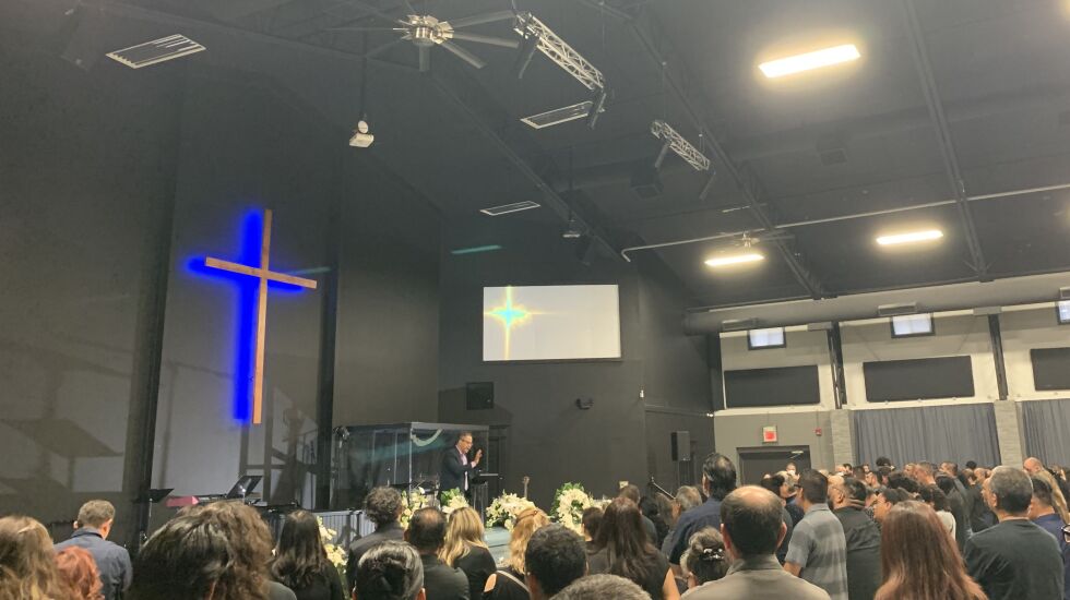 Shortly before the pastor began speaking, Toledo’s family took the stage to lead attendees in singing the Spanish hymn “Más Allá del Sol” (“Beyond the Sun”).