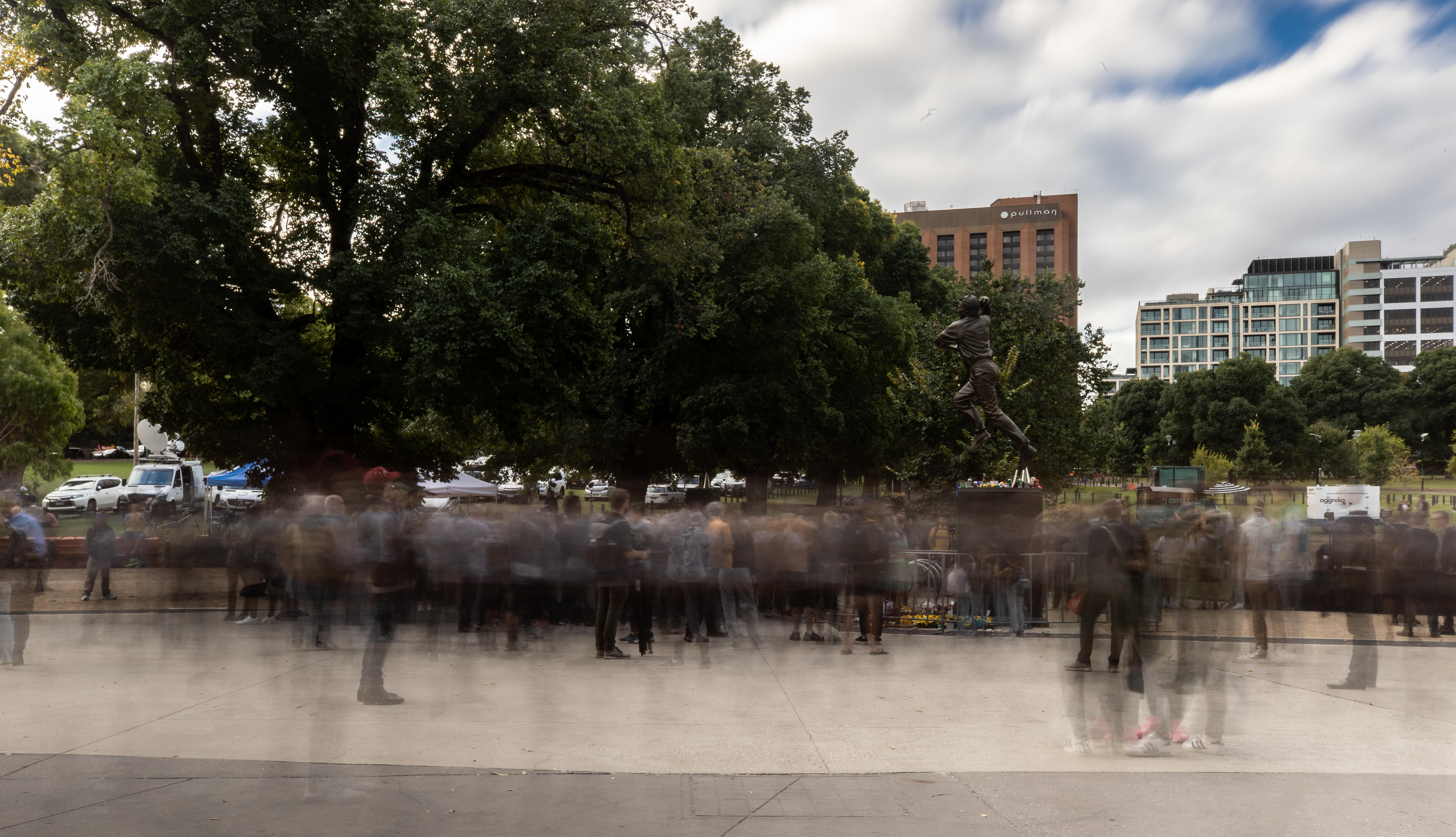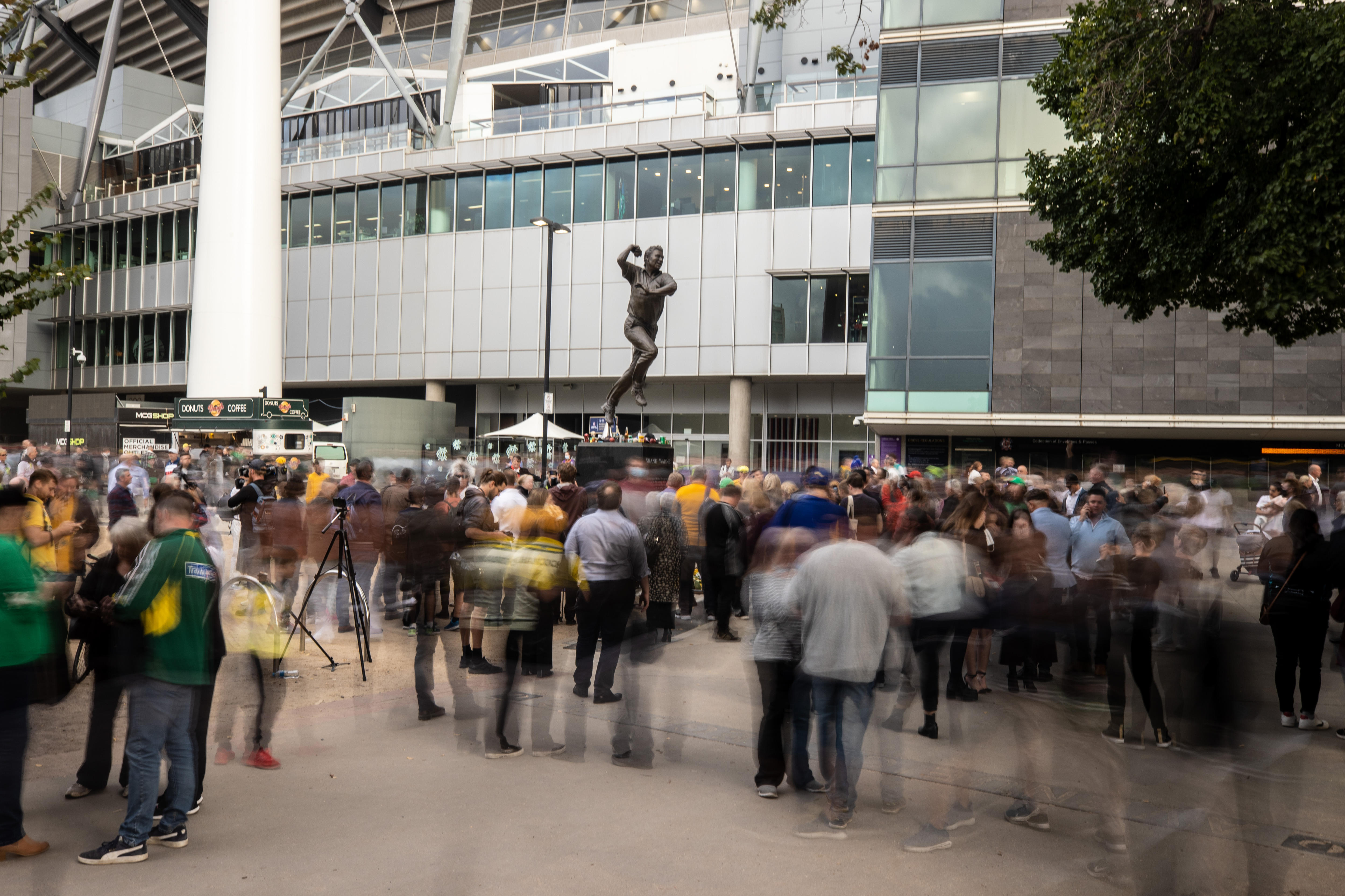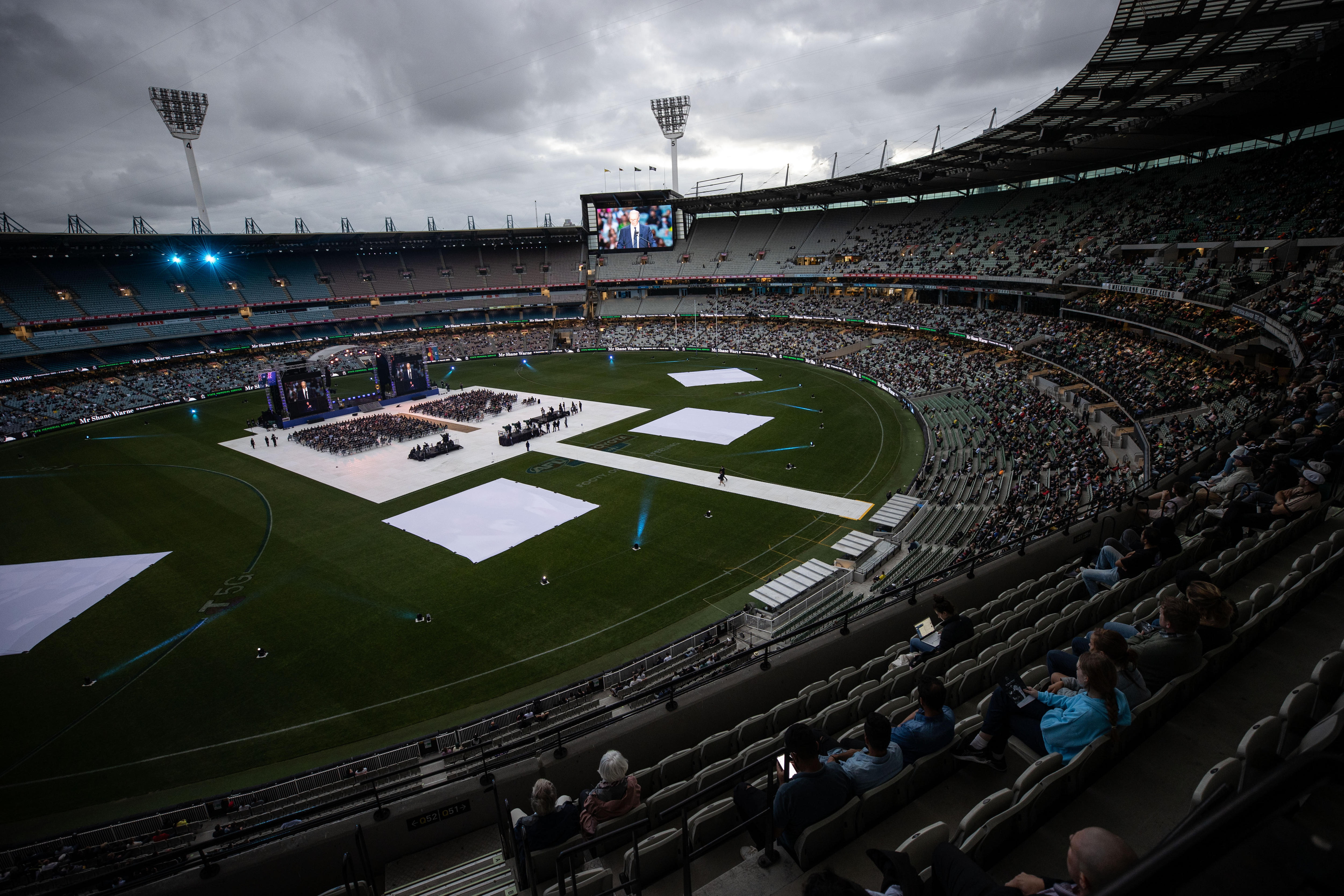 Walking from the train station to the Melbourne Cricket Ground, the mood is hard to put a finger on. Sombre would be wrong. A universal respect permeates around the outside of the ground.