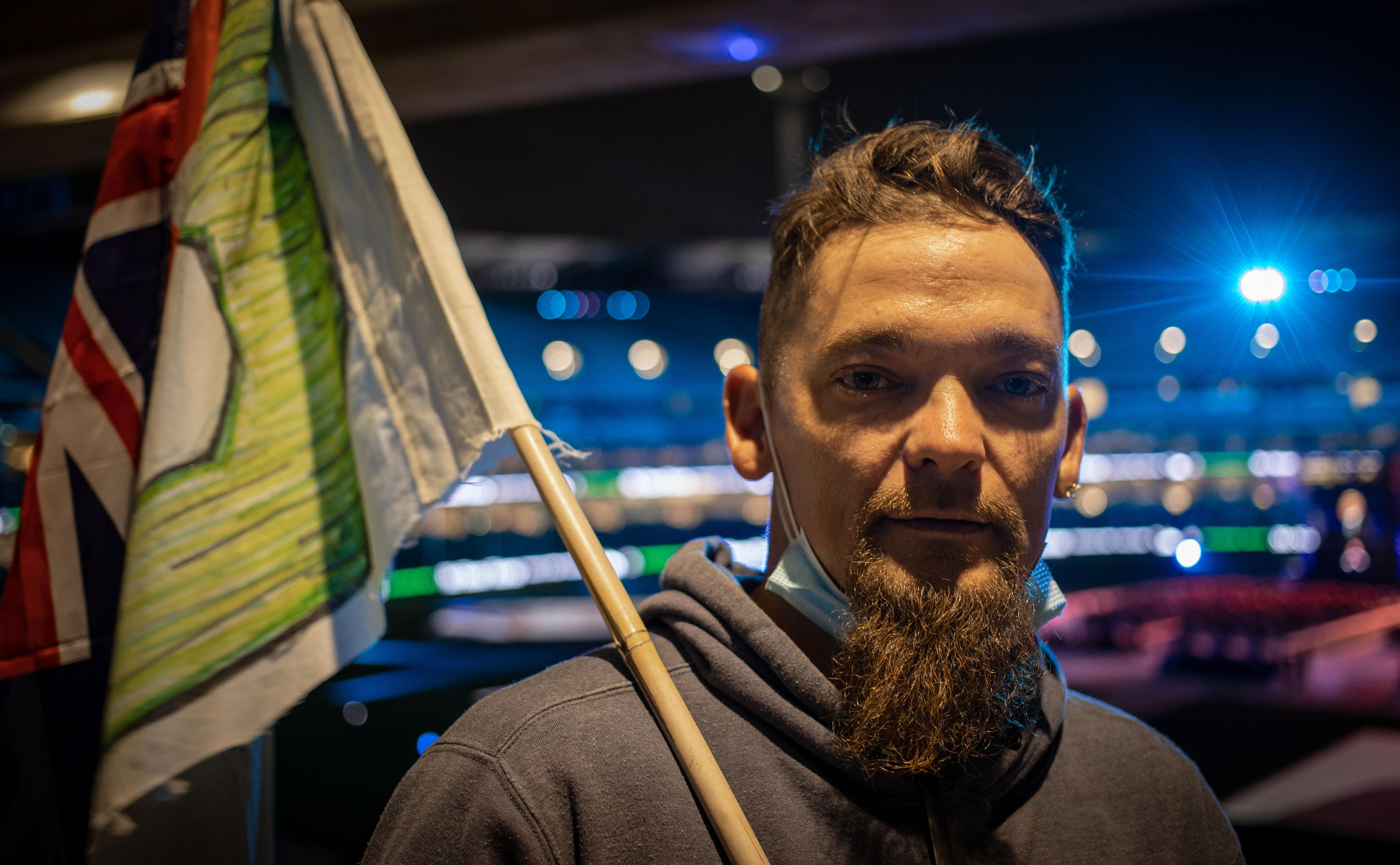 Mr Blenkiron has spent the day travelling by train from the South Australian town of Mount Gambier. It's his first time at the MCG,