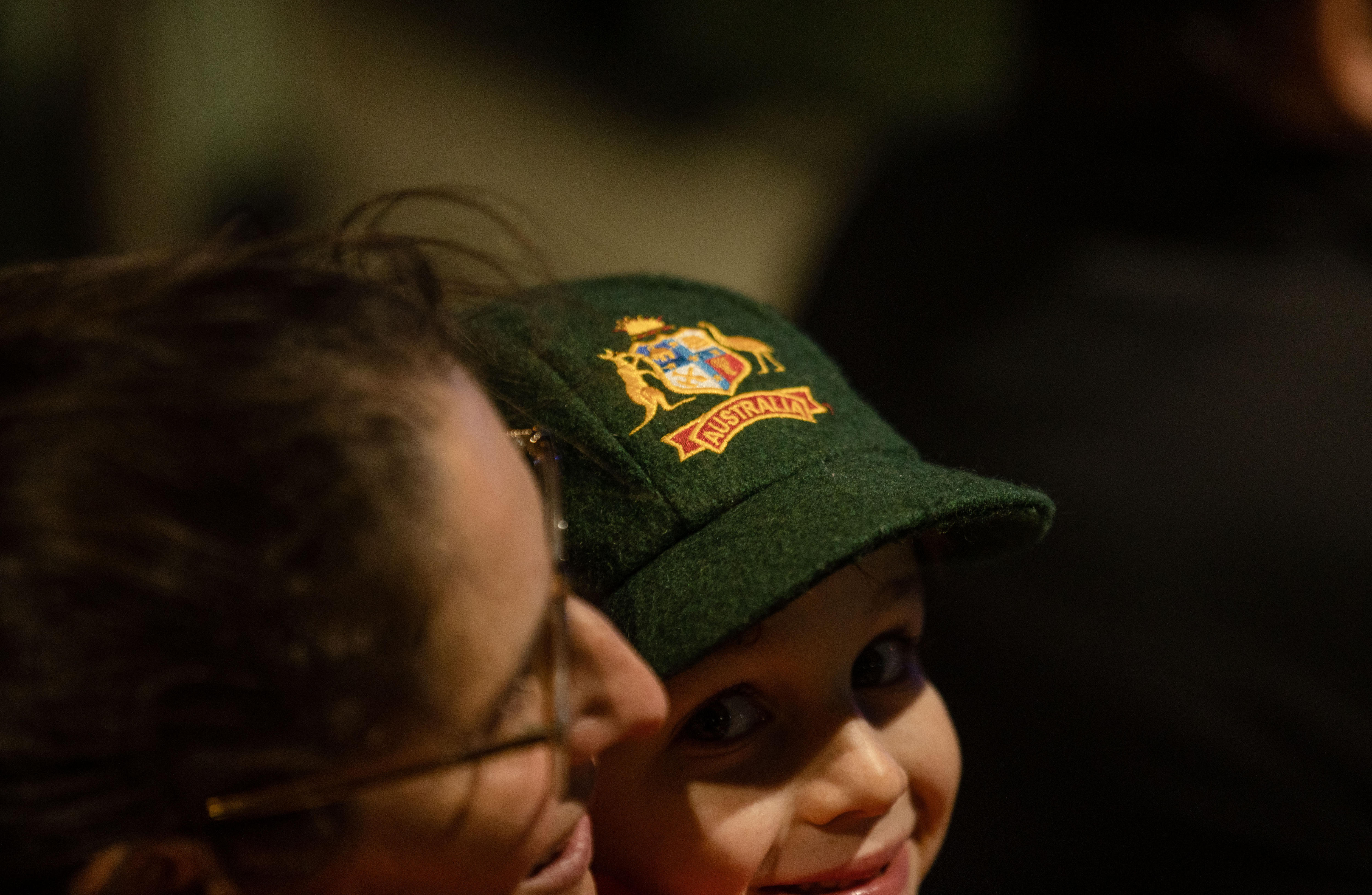 As the service draws to its conclusion, I spot six-year-old George Miles, dressed in full Test whites including a replica baggy green. He's probably the youngest someone could be that may still have a memory of the service tonight when they're an adult.