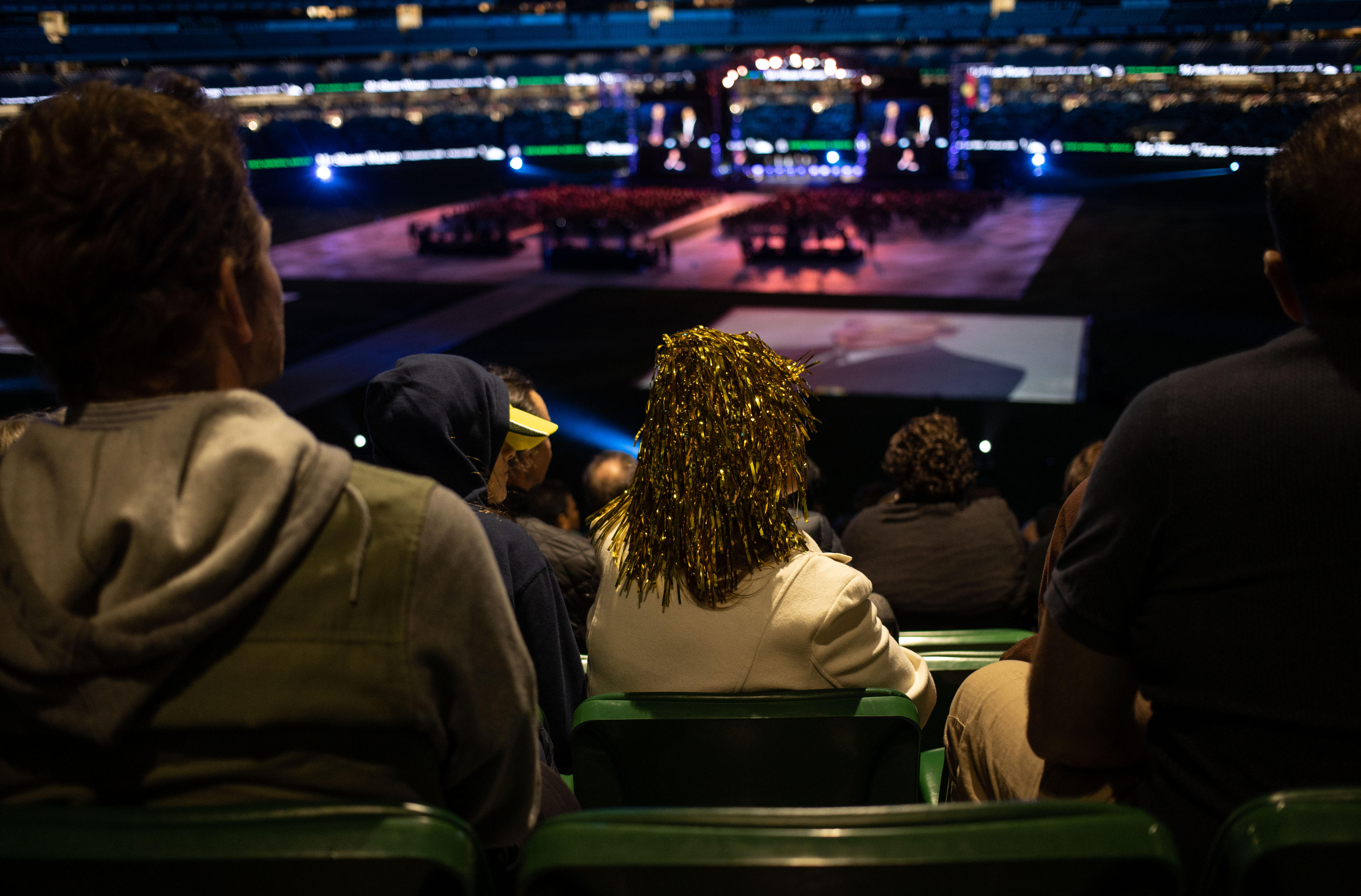 Just as Noiseworks frontman Jon Stevens starts singing some of Warne's favourite rock ballads, the wind significantly picks up, creating an added sense of theatre to the performance in the middle of this colosseum, where Warne was so often the ringmaster.