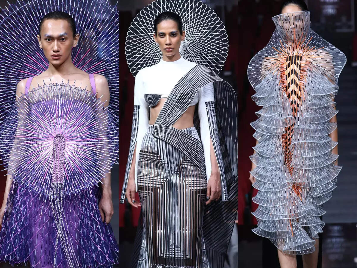 Fusing technology with traditional haute couture craftmanship is Dutch fashion designer Iris Van Herpen and designer Amit Aggarwal is India's answer to the master couturier who presented a fabulous collection titled Pedesis during the ongoing FDCI India Couture Week 2022 at Jawaharlal Nehru Stadium.