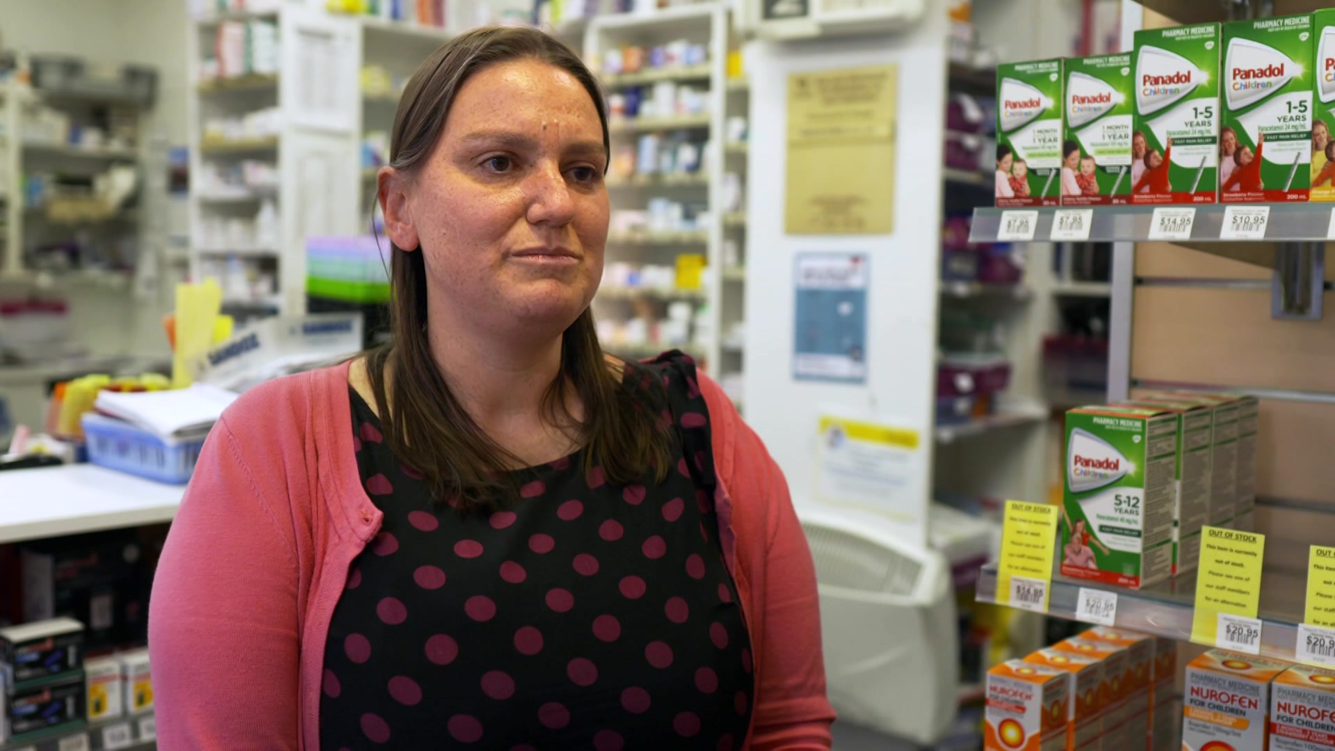 "People can visibly see the cold and flu and the pain relief areas being out of stock, but in the dispensary, there's certainly been a lot of medications for chronic conditions [out of stock]," she told 7.30.