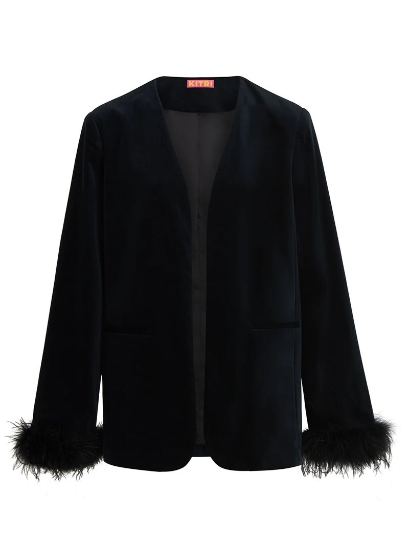 Kitri Marlene Black Velvet Feather Blazer, £147 (was £245)